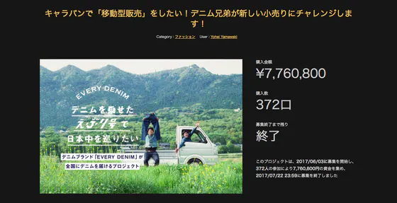 このプロジェクトは、2017/06/03に募集を開始し、 372人の支援により 7,760,800円の資金を集め、 2017/07/22に募集を終了しました