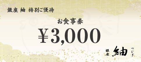 銀座和食紬でお使い頂ける3万円分のお食事券をお届けします。
