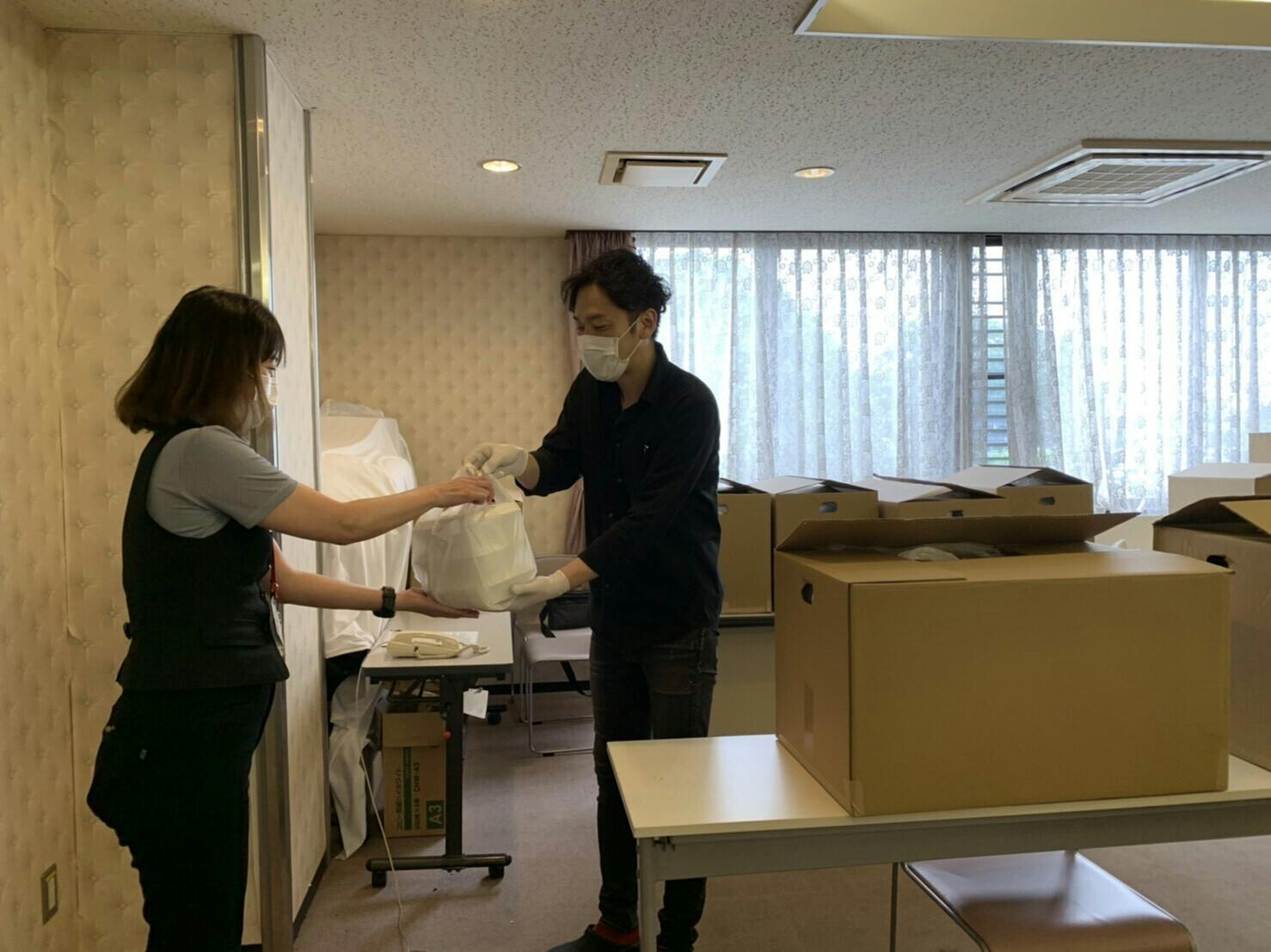 19日は一日の提供食数が過去最高の約400食となりましたが、「支援者やサポーターの皆様の支援をお弁当に変えて医療従事者の皆様に届けたい!」という思いで社員一同頑張りました!