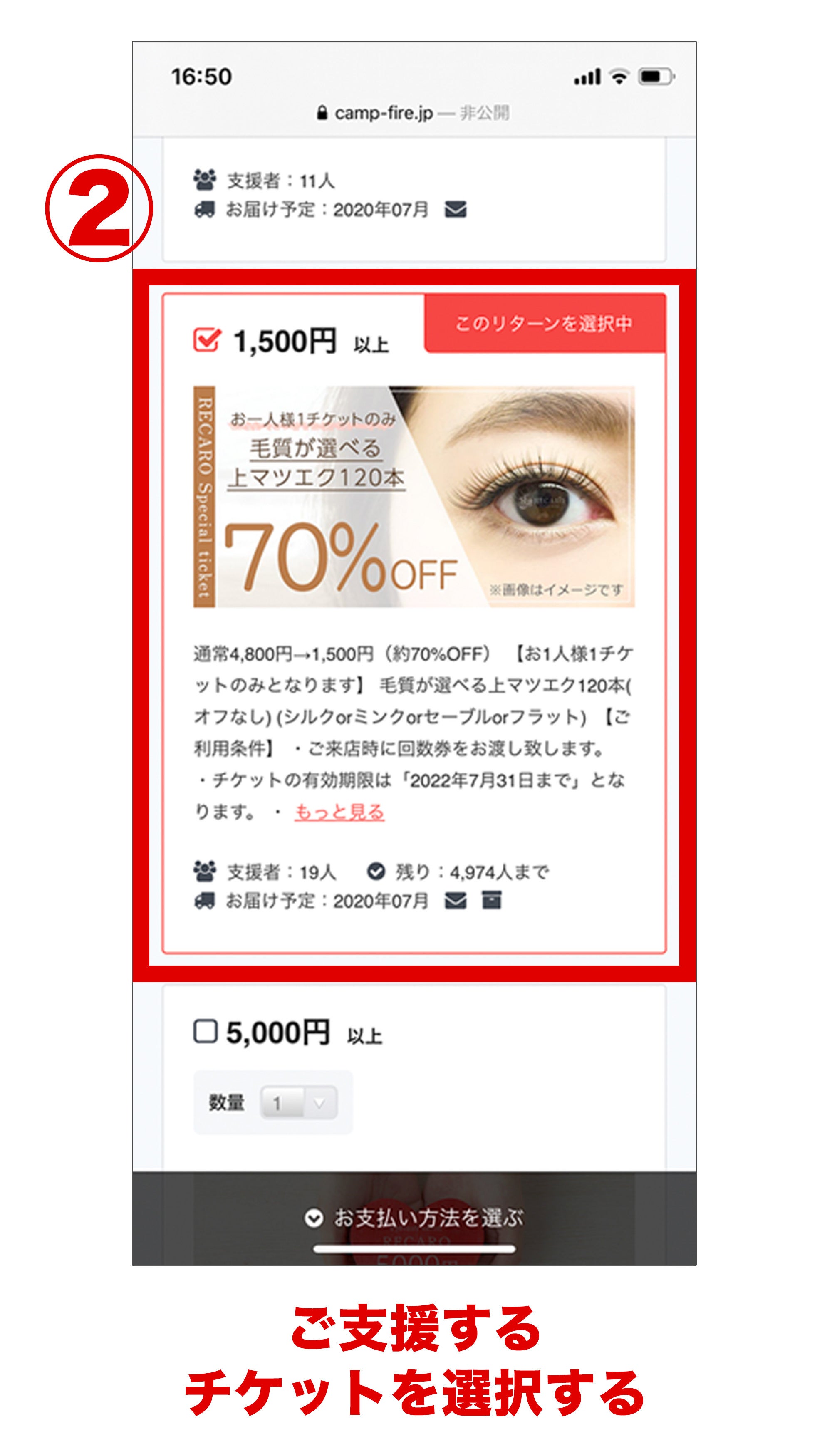 2.次にご支援するチケットをお選びください。