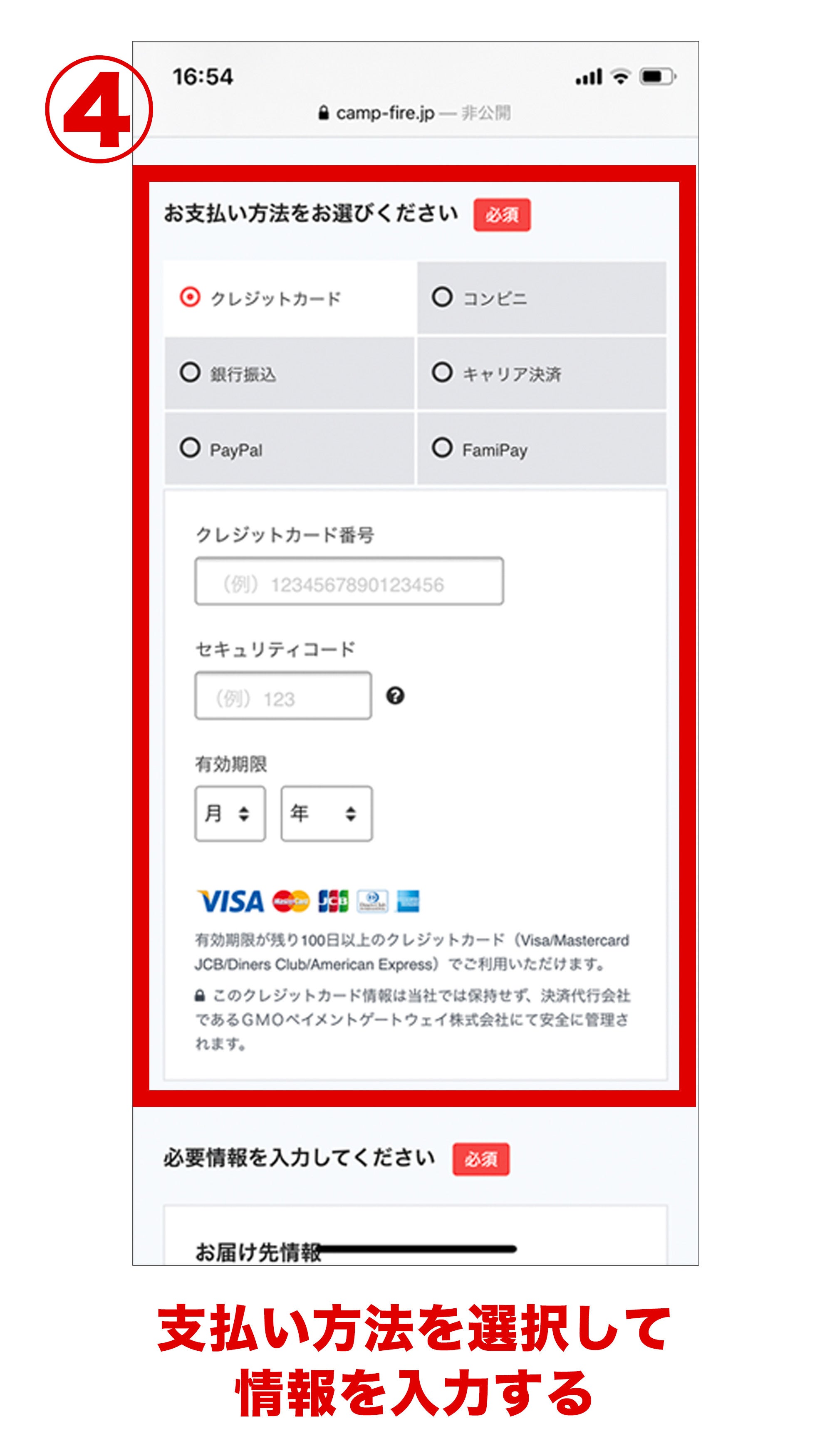 4.お支払い方法を選択し、必要な情報の入力お願いします。