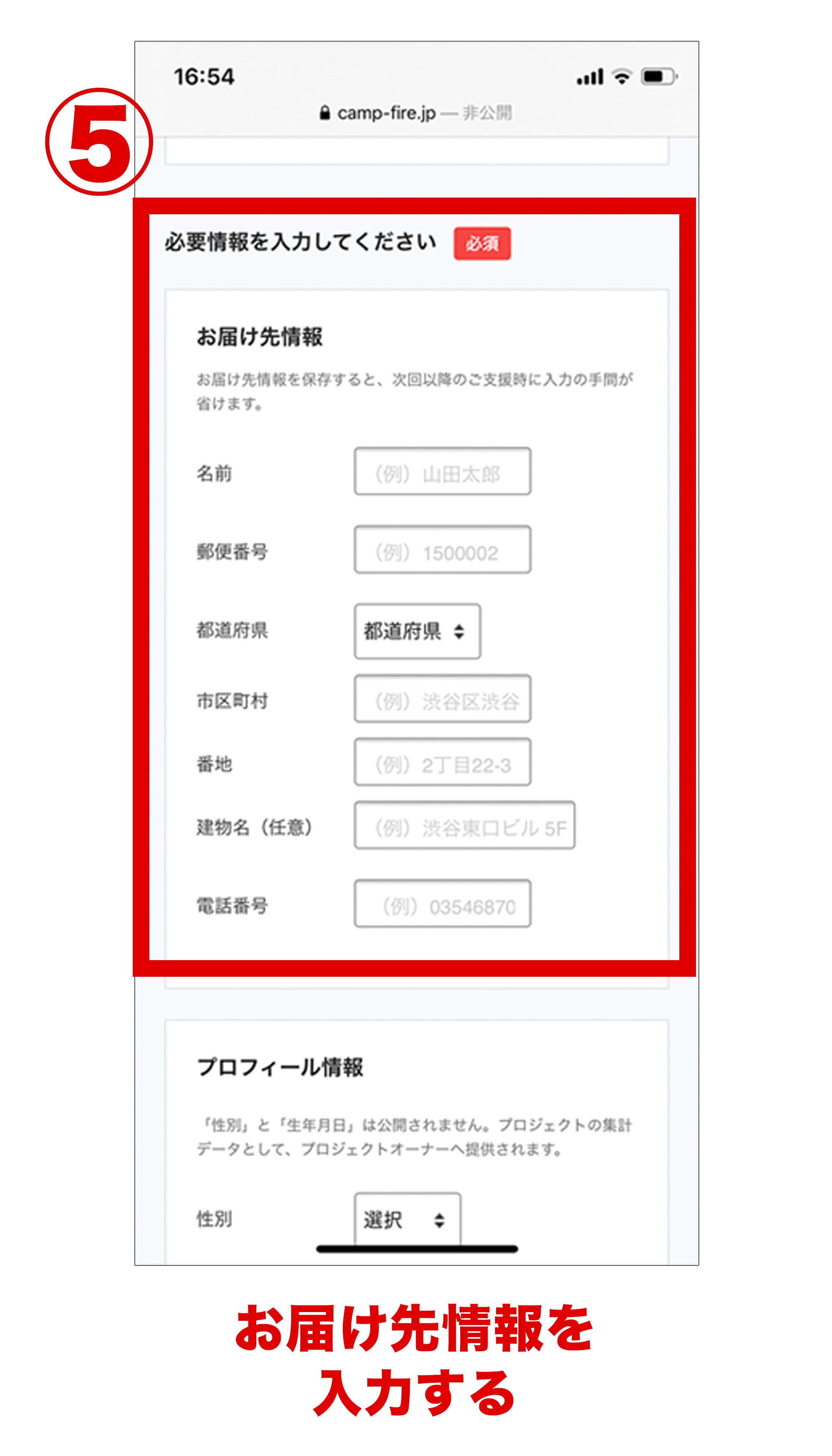 5.必要な情報を入力する欄で「お届け先情報」のご入力お願いします。