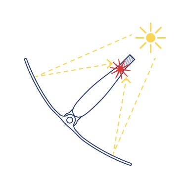 サンケースギアは革新的な技術で設計され、焦点に太陽光線を集中させることにより、瞬時に高温を実現します。焦点で最高400°Cの温度に達し、様々なタイプの燃料に素早く点火します。