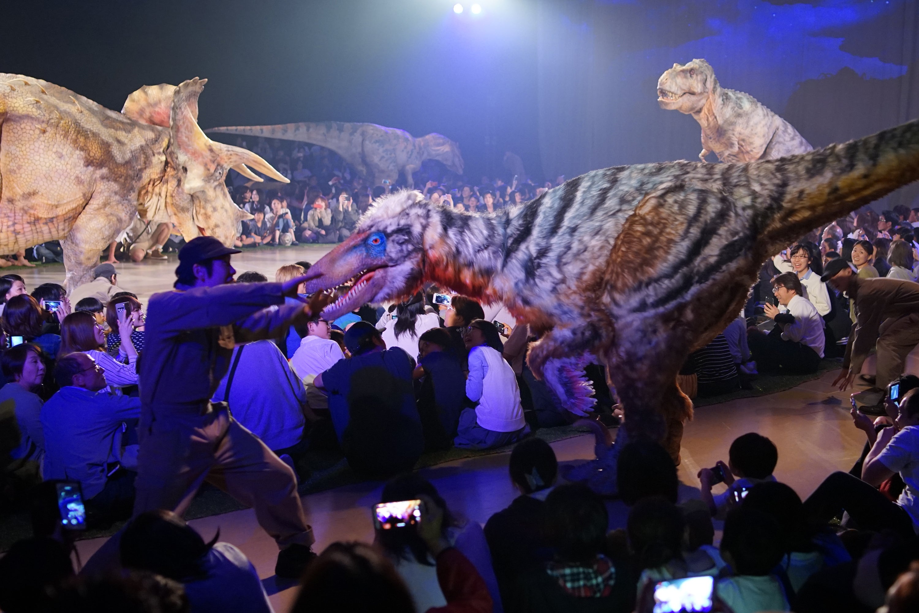 多種多様な恐竜の開発や、国内では全国5大アリーナツアーの開催、海外ではクウェート王立博物館のオープニングセレモニーに出演等、「DINO-A-LIVE(ディノアライブ)」の活動の場はどんどん広がっております。将来的には数十頭のさまざまな恐竜が出てくる本格的なエデュテインメントライブショー(Education + Entertainment)を世界の皆様にお届けすることを目指し、日々奔走している最中でございます。