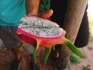 ドラゴンフルーツは白果肉と赤果肉の2種類があり、どちらも美味しいですが、赤い方が若干甘味が強くなります。