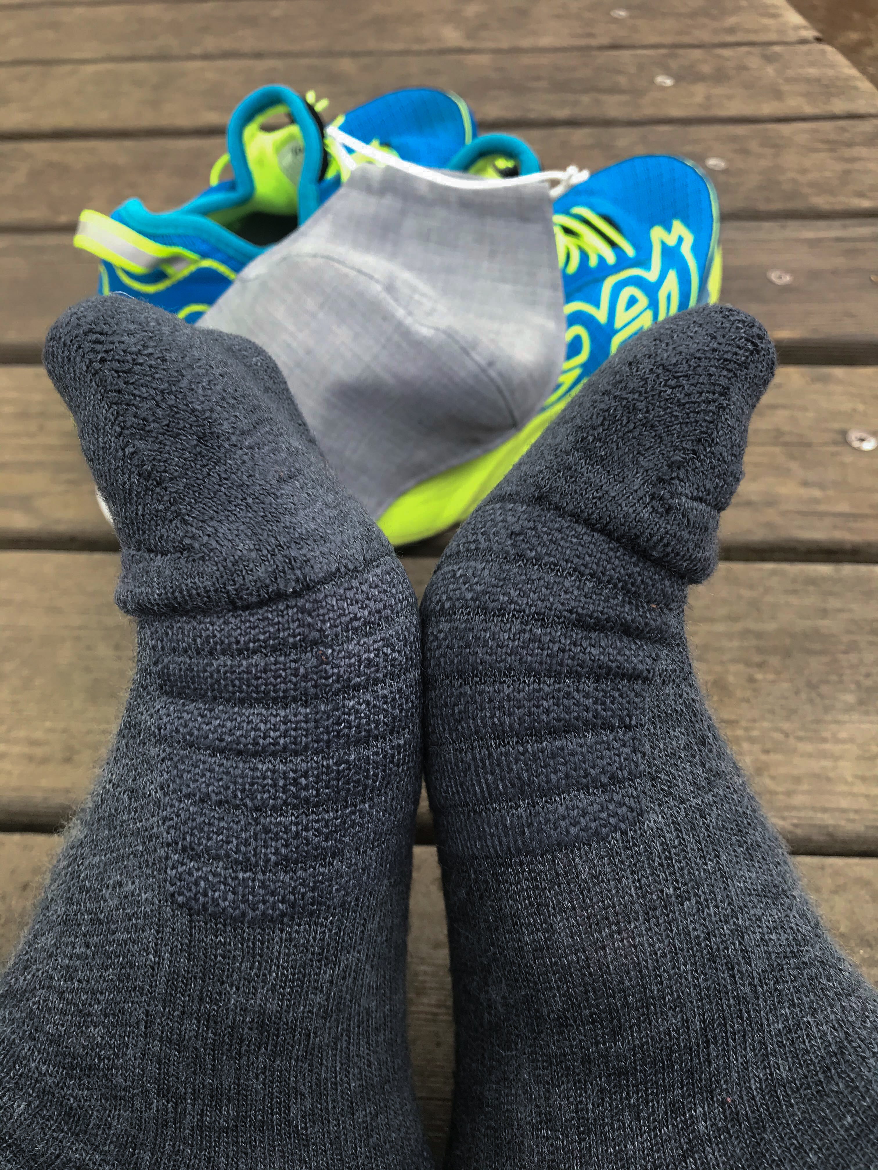 早朝、約10km ランでしたのでそこまで汗だくにはなっていませんが、靴を脱いだ時も冷えず、汗によるベチャベチャ感もほぼなし。当然ですが、まだまだホールド感もよく、よれた感じはありません。
