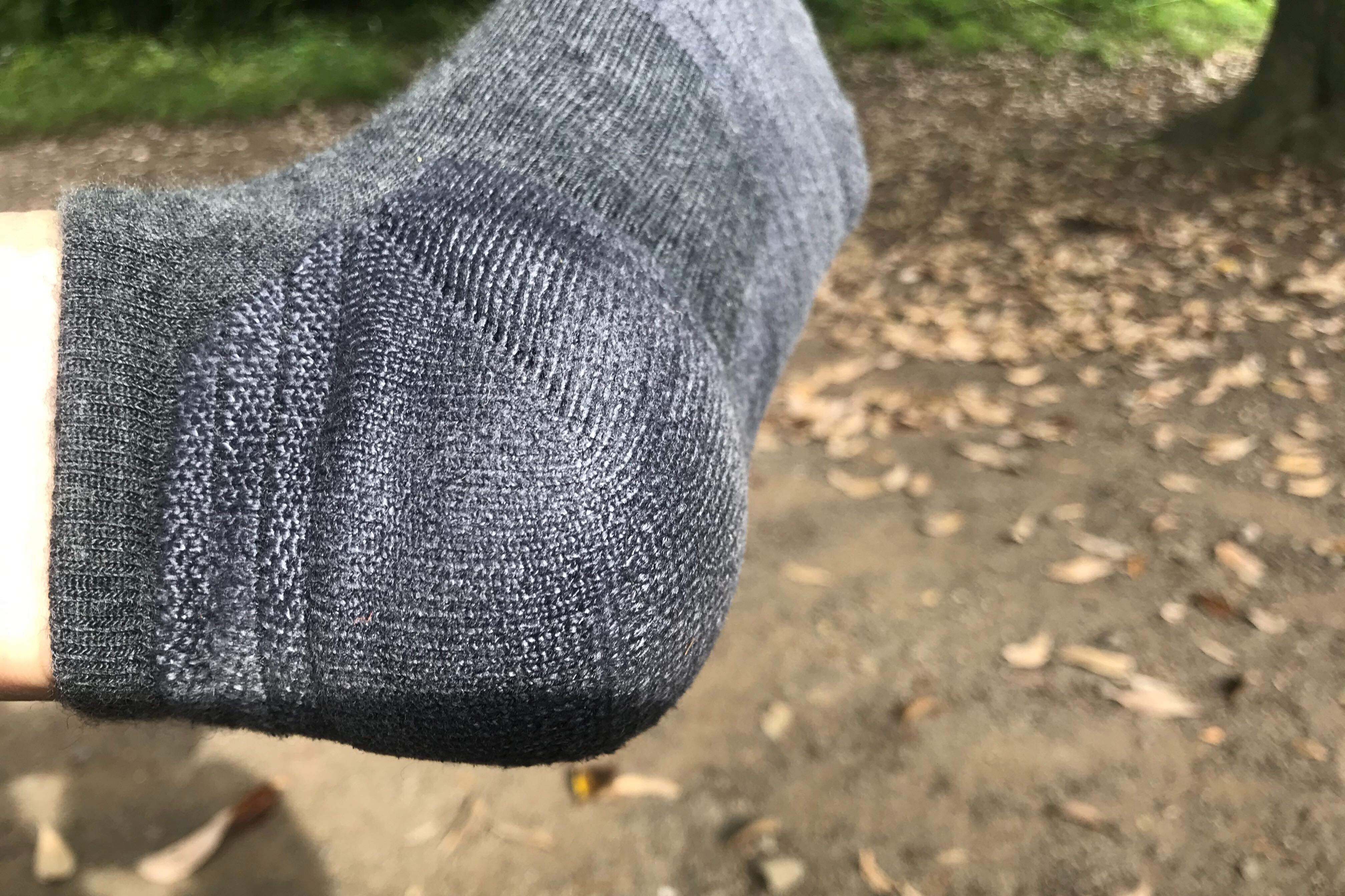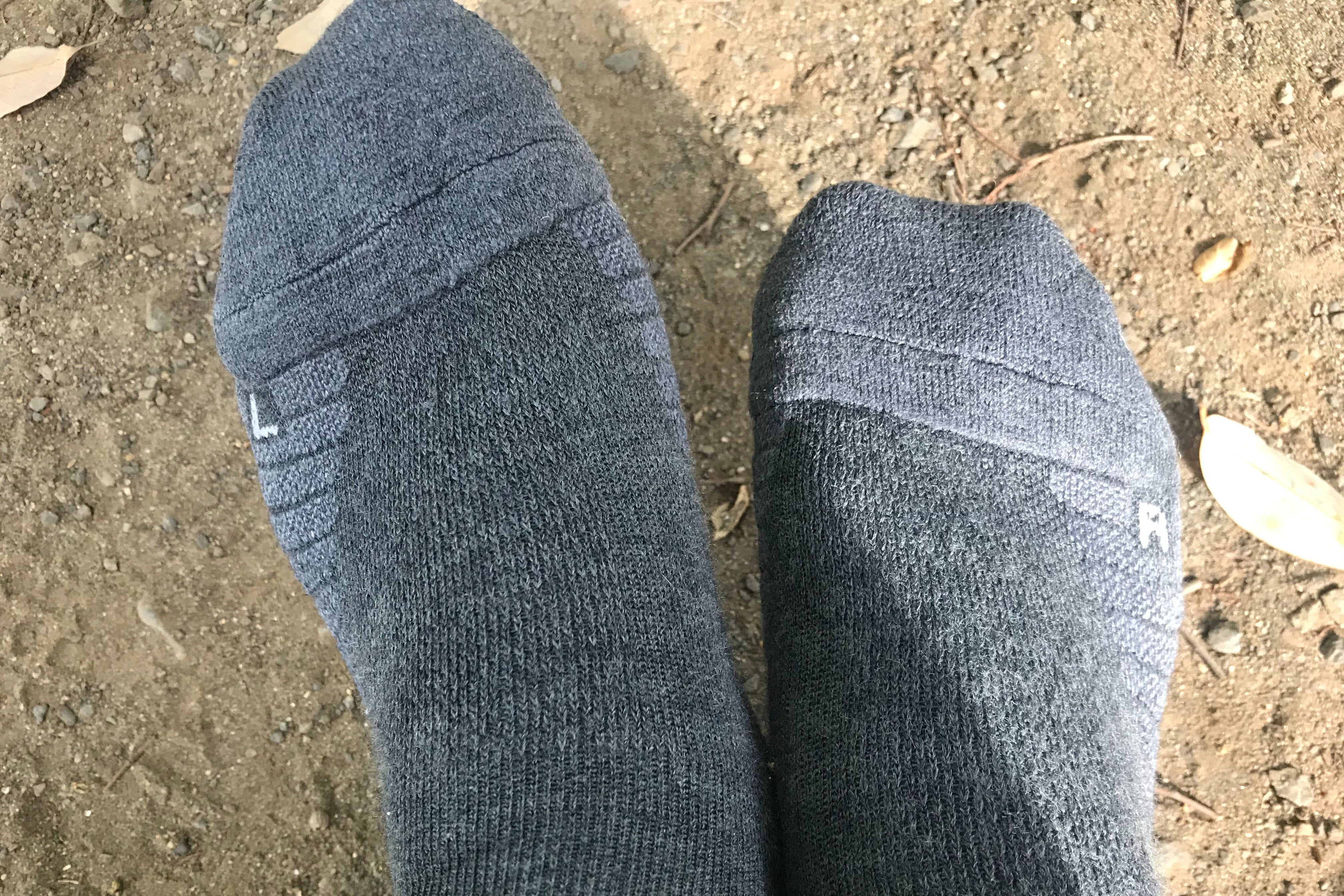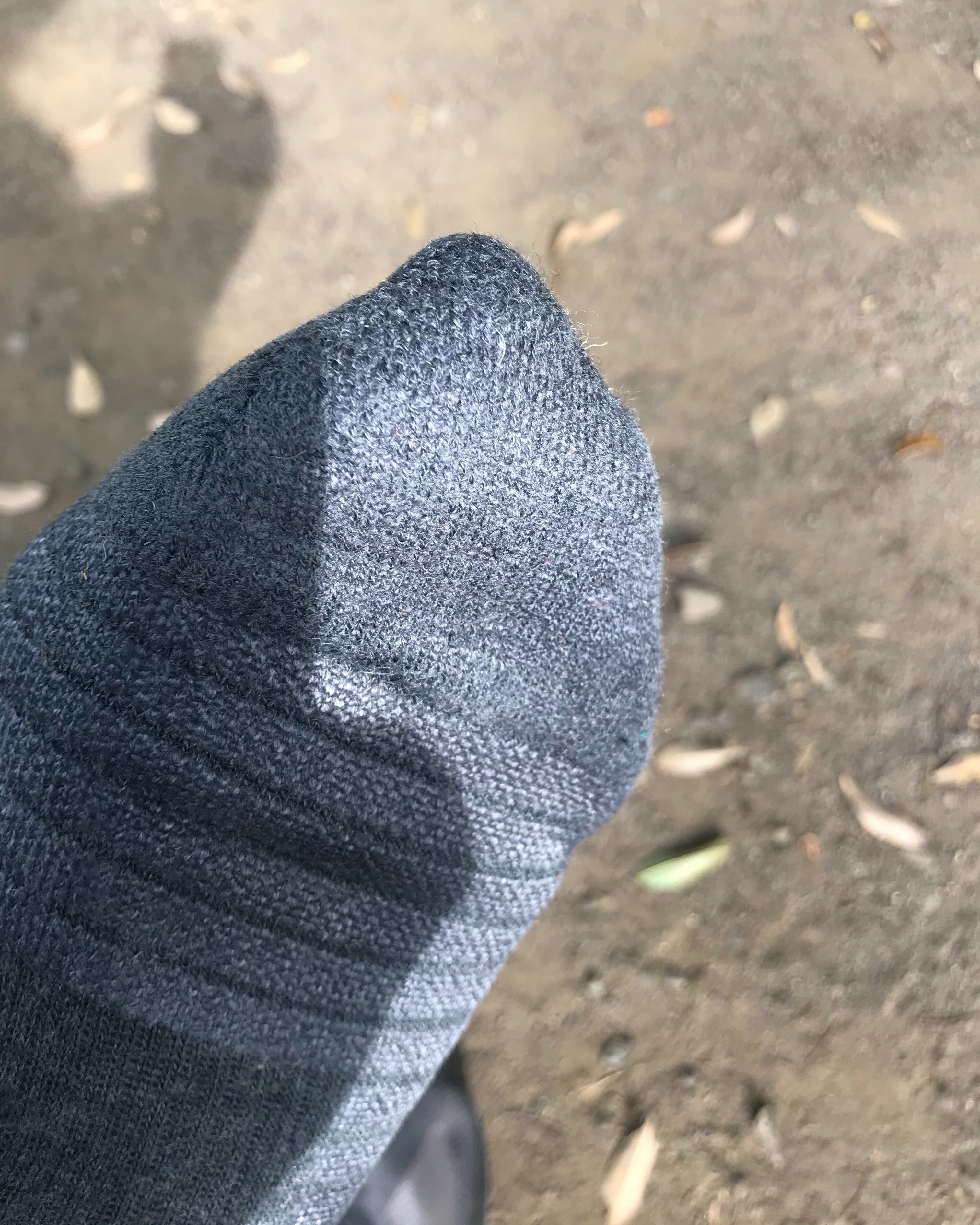 甲の毛羽立ちが見えますが、毛玉になるほどではありません。(私は靴紐をしっかり締めるタイプなので、靴内でのズレが少ないのも劣化が遅い理由かもしれません)