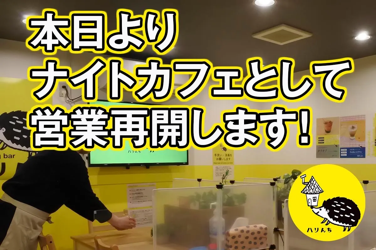 ということで、ハリネズミバー ハリんちは、急ですが本日5/23(土)から、アルコールを提供しない「ナイトカフェ」として営業再開いたします!
