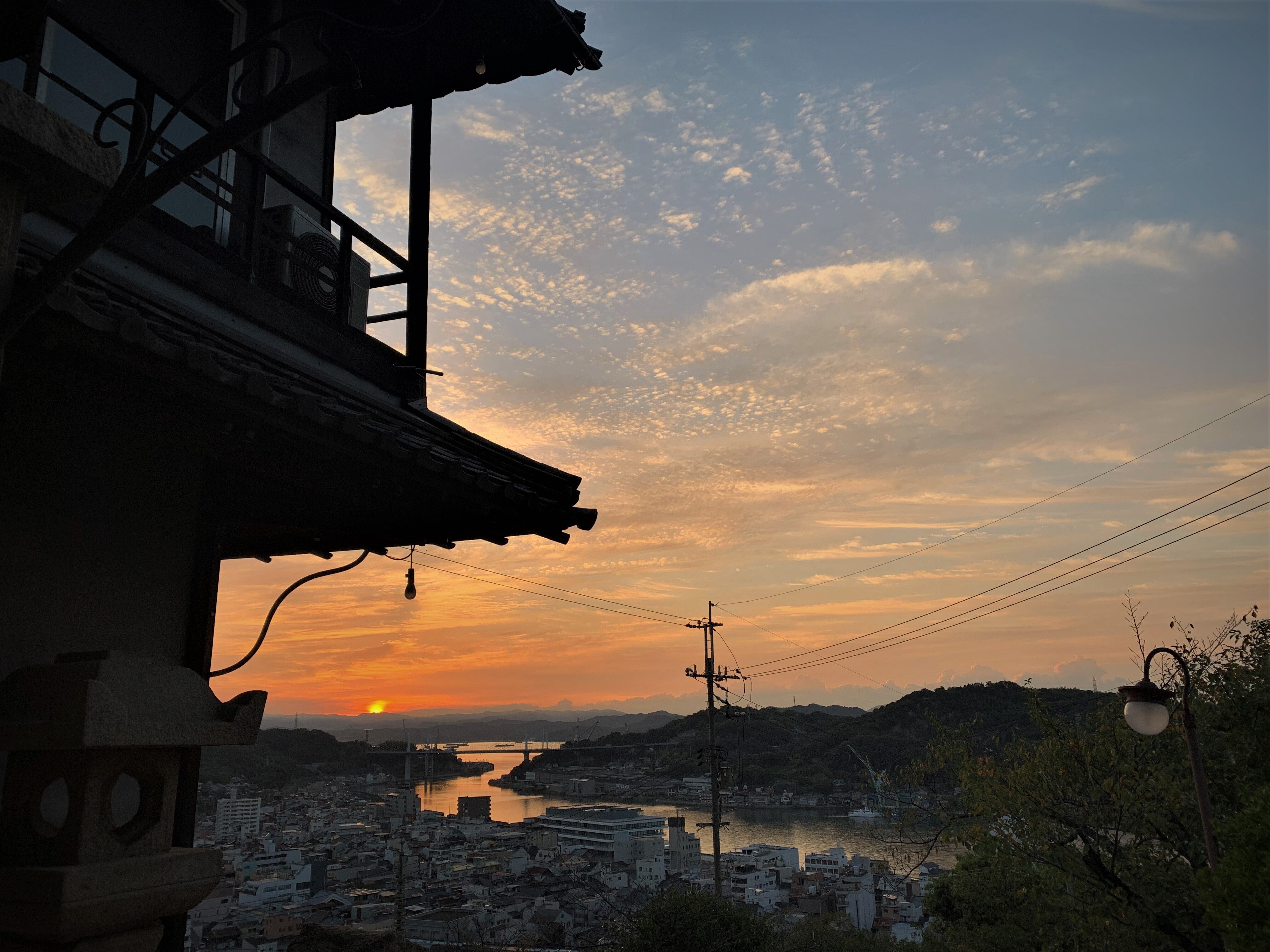 夏が終わり、日の出の時間が遅くなってきたので、みはらし亭のお部屋からあまり早起きすることなく日の出を楽しむにはちょうど良い時期となりました。少々曇っていても朝焼けもきれいです。先日、来年1月13日宿泊までのご予約の受付を開始いたしました。みはらし亭では、初日の出をパジャマのまま拝んで、さらにみはらし亭から5分で千光寺にて初もうでができます。