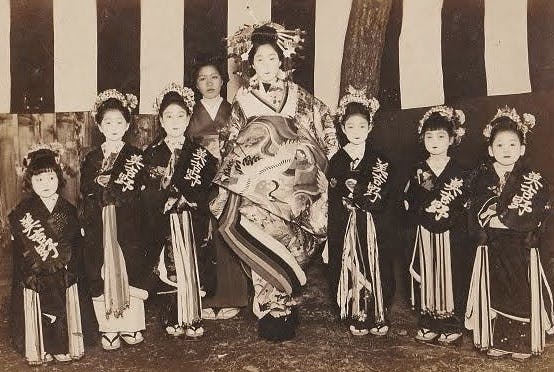 『末廣屋』は現在太夫2人、少女2人、禿全国で21人程抱えております。