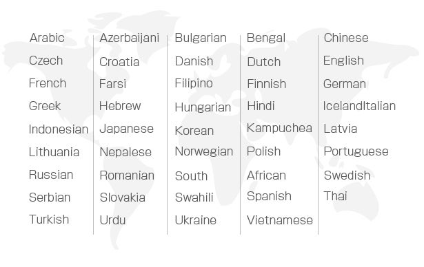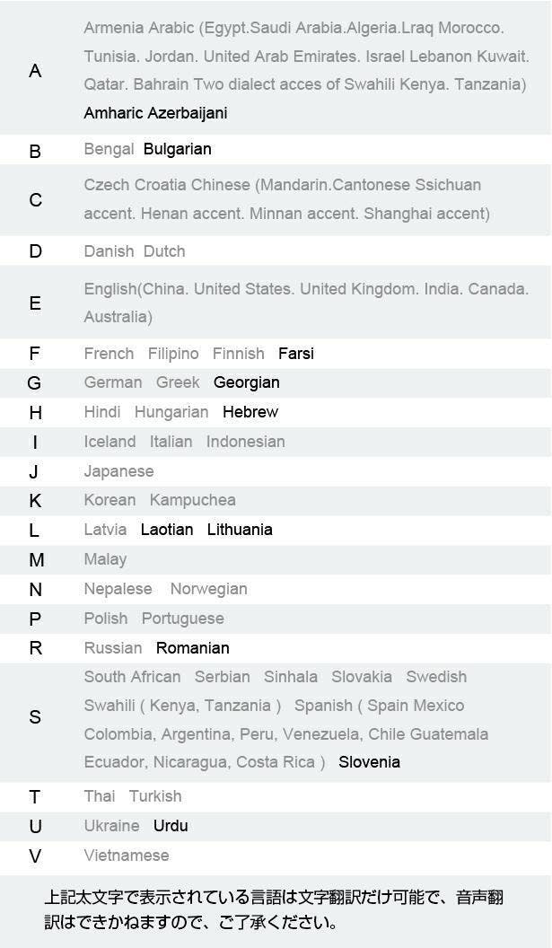 現在8個言語(アゼルバイジャン、アムハラ語、ペルシャ語、グルジア語、ラオス語、リワノ語、ウルドゥー語、ウルドゥー語)が対応できません。