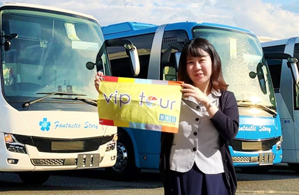 現在約500台のバスとハイヤー送迎を運用。高速バス、観光バスツアー、特別支援学校送迎、福祉施設送迎の他、観光体験施設、飲食事業、宿泊事業、美容・フィットネス事業などを展開中。