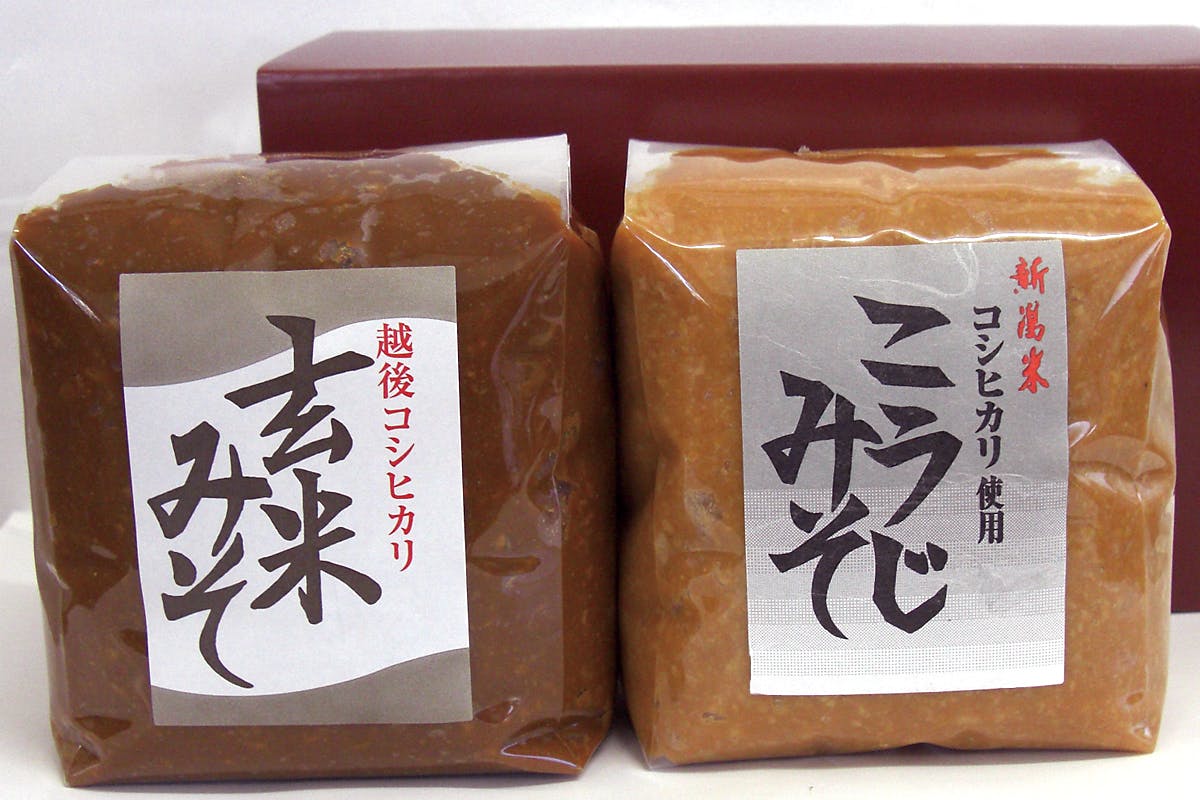 弊社の一番の特徴は「コシヒカリ玄米味噌」です。この味噌は先々代の社長の時代、健康に良いと言われる「玄米」で糀を起こすことができないかと試行錯誤の末10年の月日をかけ、完成させた味噌です。この「コシヒカリ玄米味噌」で作った野菜たっぷりの具沢山の味噌汁は栄養バランスのとれた一品と自負しています。「具沢山の味噌汁は健康の源です」をモットーにし、味噌作りに励んでまいりました。