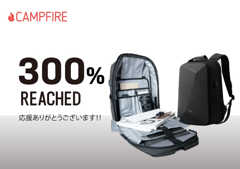 皆さまのご支援ありがとうございます。暖かいご支援のおかげで目標金額300%を超えることができました!!また支援者の方も44名に到達しました。本当に感謝申し上げます。あと33日間募集は続いていきますので引き続きインスタ、フェイスブックなどSNSでの拡散にご協力頂けますと嬉しいです。万能バックパックTO BEを一人でも多くの方にお伝え頂けると大変嬉しく思います。引き続きよろしくお願い致します。SHOCHIKUBAI 高橋