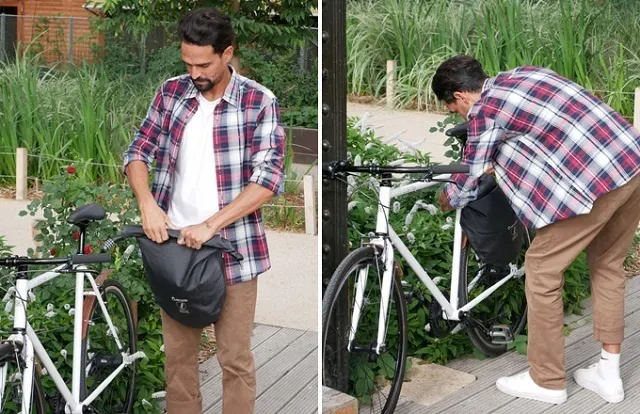③ 自転車ロックとして使える!バッグは丸めればコンパクト