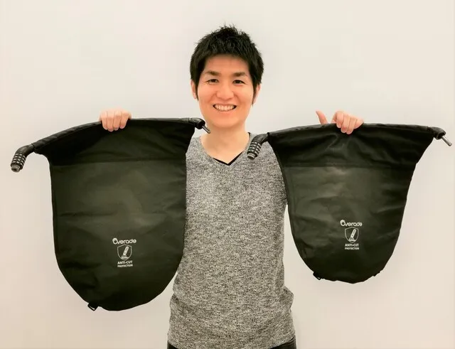 盗難防⽌・防⽔・防刃機能付きだから、自転車から離れても、雨の日でも安心!