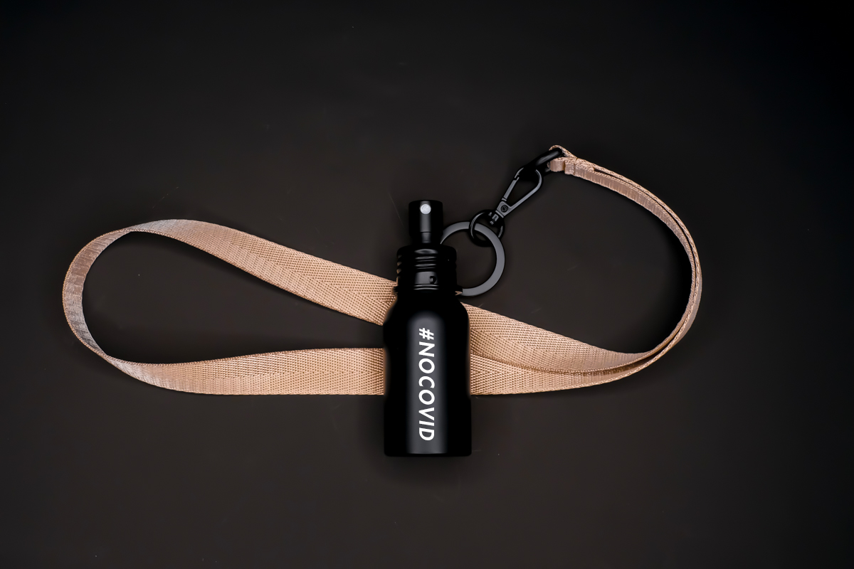 #NOCOVID(コロナウイルスをなくそう)というメッセージをストラップに刻み込みました。