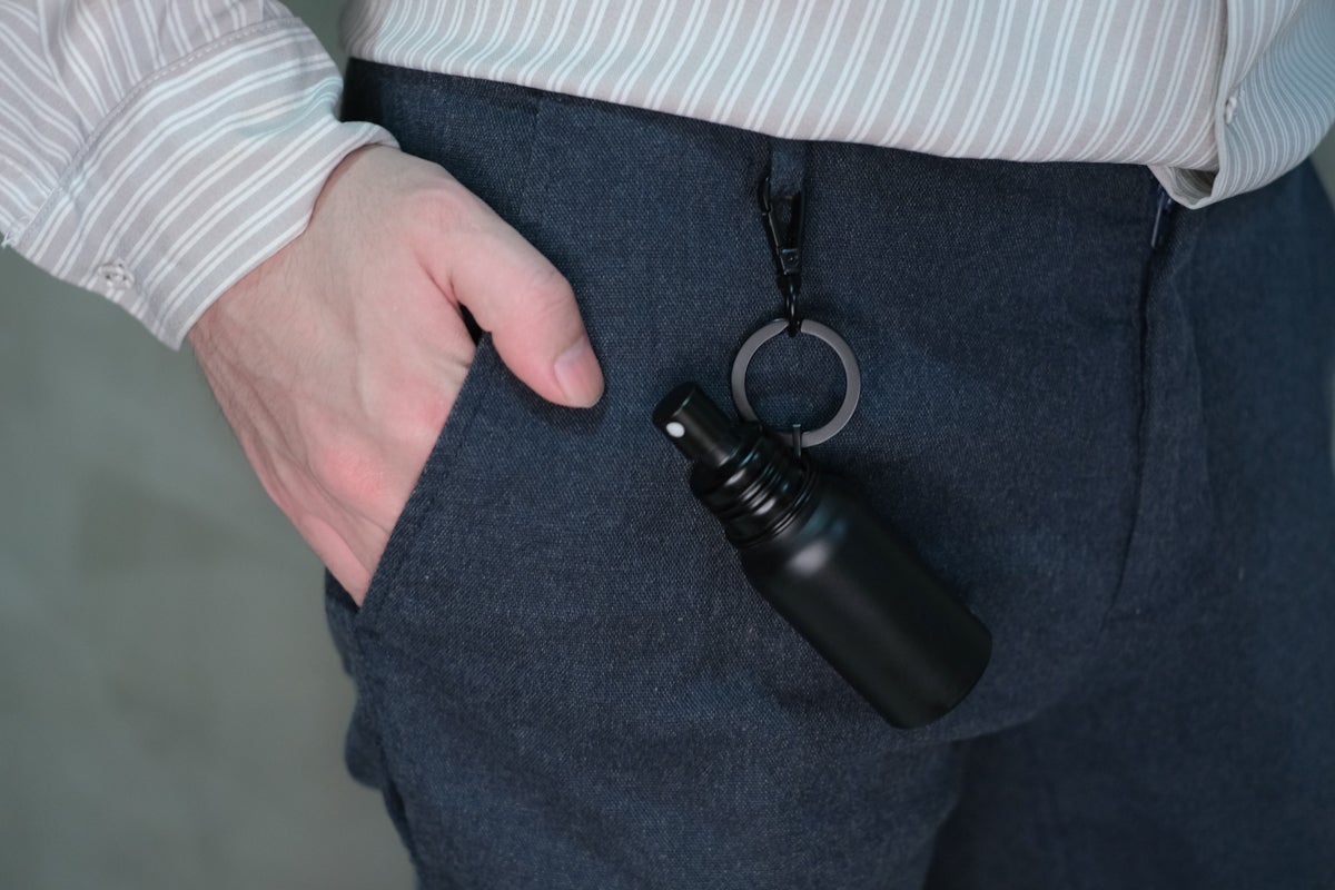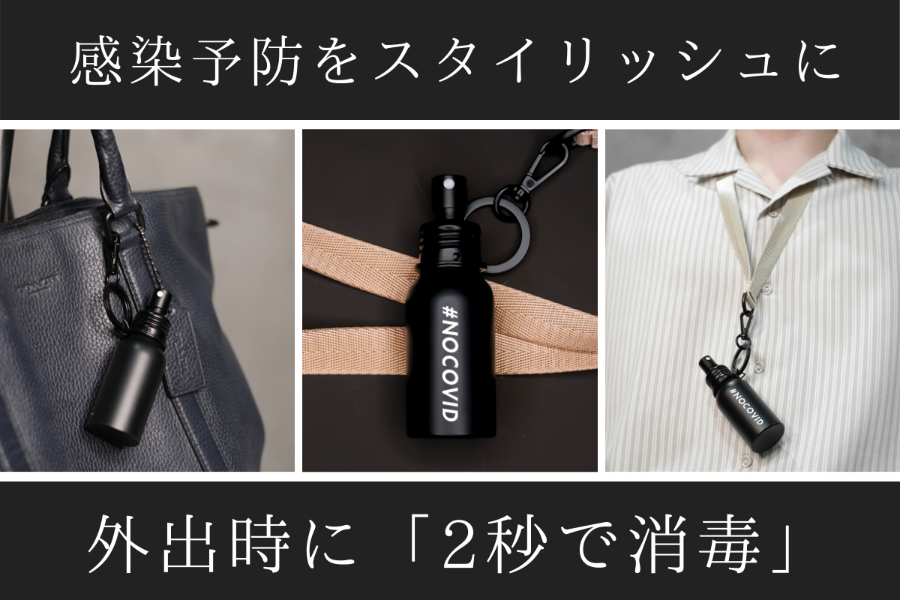 そこで、スタイリッシュなデザインかつ、ファッションアイテムとしても使えるモノであれば、アルコール消毒液を携帯する習慣化に役立てるのではないかと考えました。