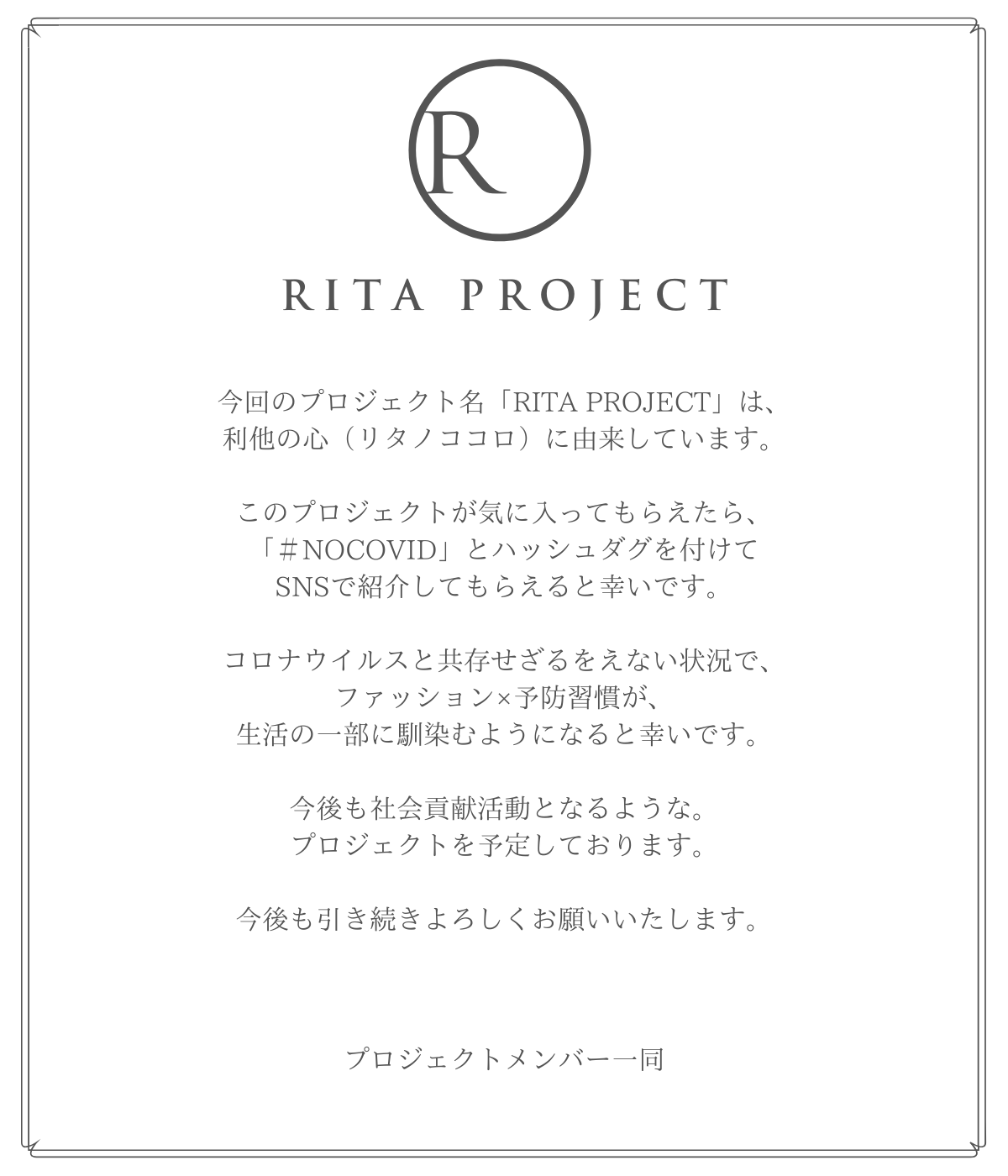 また、このプロジェクトをきっかけに、マスク以外の消毒グッズを、有名ファッションブランドがどんどん出すようなムーブメントが起こることを願っています。
