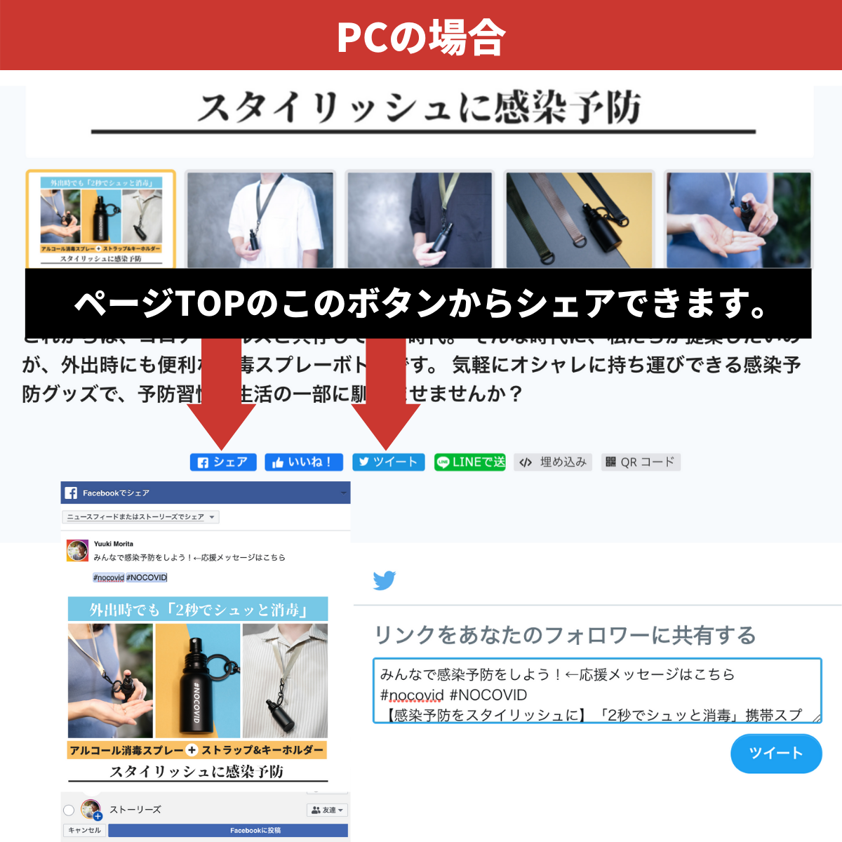 シェアの際には、以下の3つの手順に沿って行ってください。