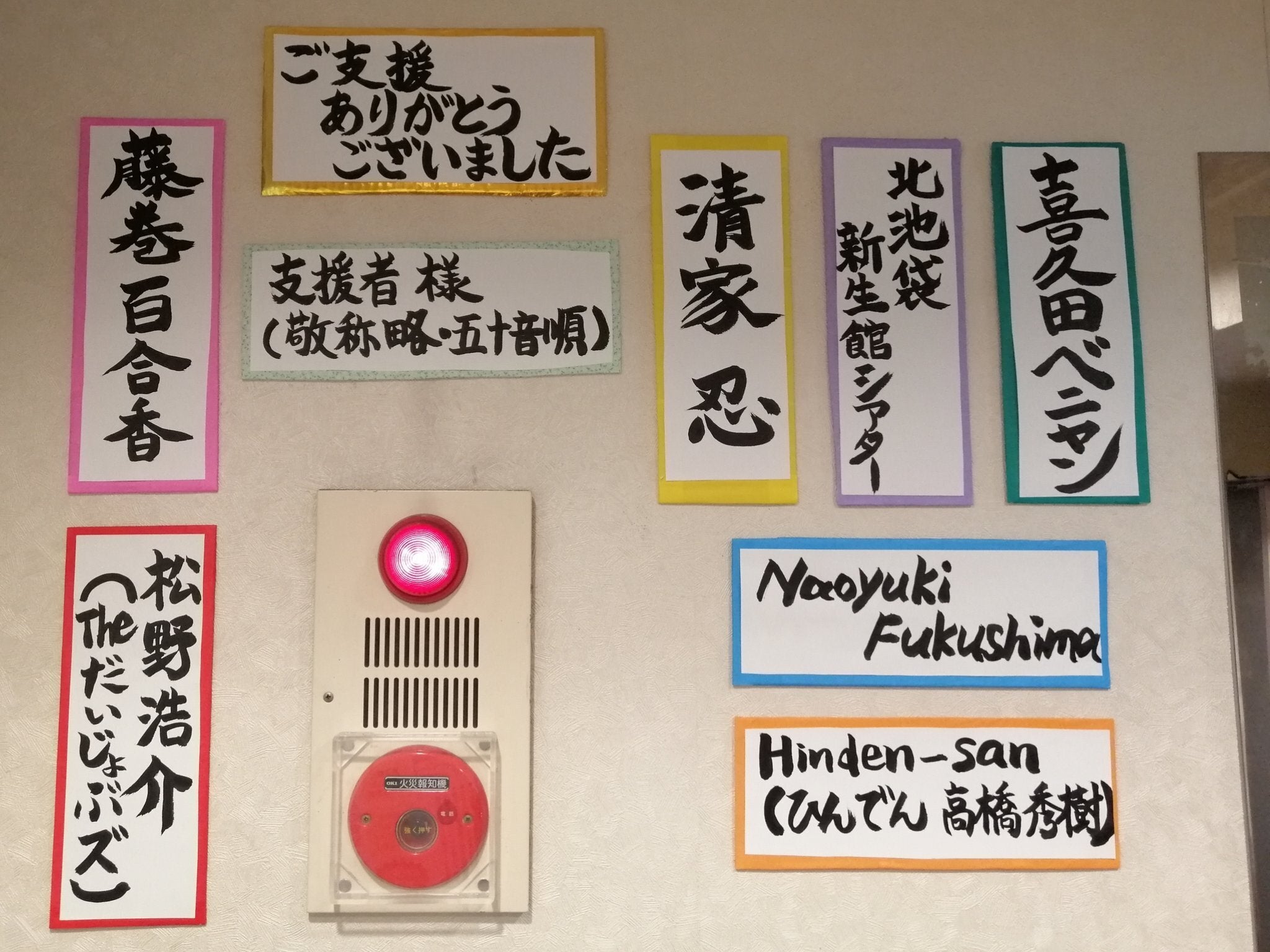 2020/10/12 12:02ご支援頂いた皆様、いつも応援ありがとうございます!ご報告が遅くなりましたが、数日前にリターンのプレート(札)が完成し、飾らせて頂きました。受付のすぐ隣に飾らせて頂いております。来場されたお客様に見てもらえる事間違いなし!手作りなので汚れたり破損する場合がありますが、その場合はすぐに作り直します。ご支援者のお名前の札で、当会場が益々盛り上がっております。作成はアーティストの井口綾香さんにご協力頂き、2人で完成させました。今月はリターンのご報告を、どんどんさせて頂けたらと思います。またご質問などございましたら、いつでも担当までご連絡頂けたらと思います。連絡先はgekiba@live.jp、電話番号が08077448695になります。どうぞ宜しくお願いいたします。 もっと見る
