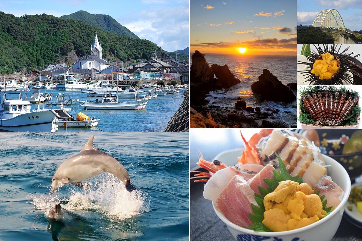 一年中野生のイルカの泳ぐ姿を見ることができ、美しい夕陽に代表される自然景観、キリスト教に関わる歴史、海の幸、山の幸などの豊富な新鮮食材など、見所がいっぱいあります。