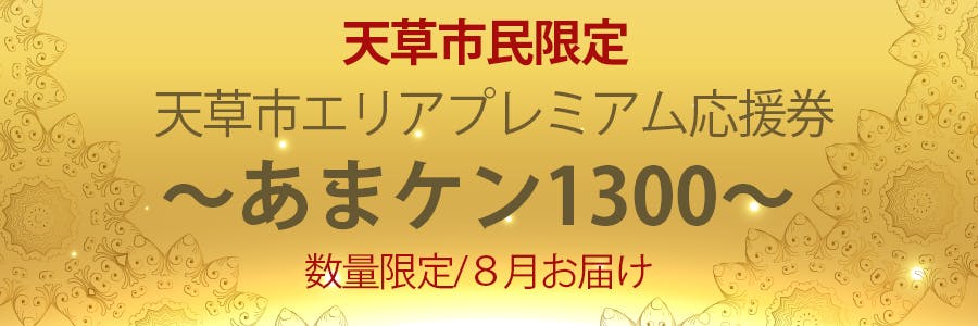 ※プレミアム応援券(あまケン1300)は天草市のお店限定です。プレミアム応援券以外はご購入金額と等価の前売券となりますのでご注意ください。