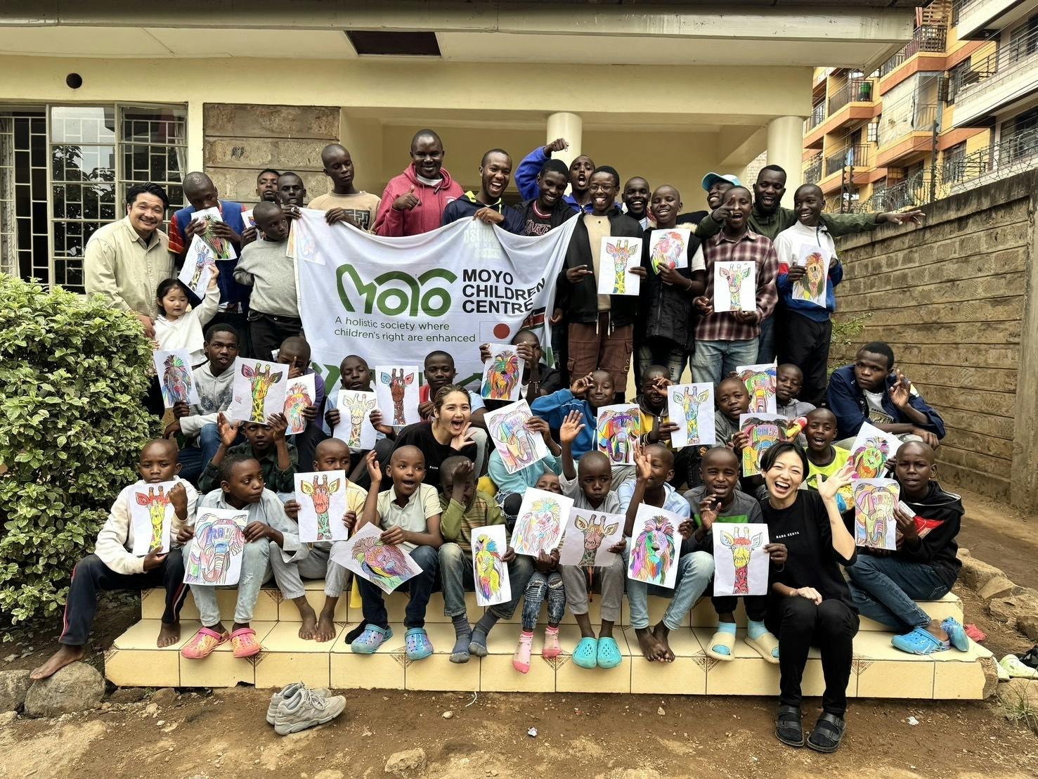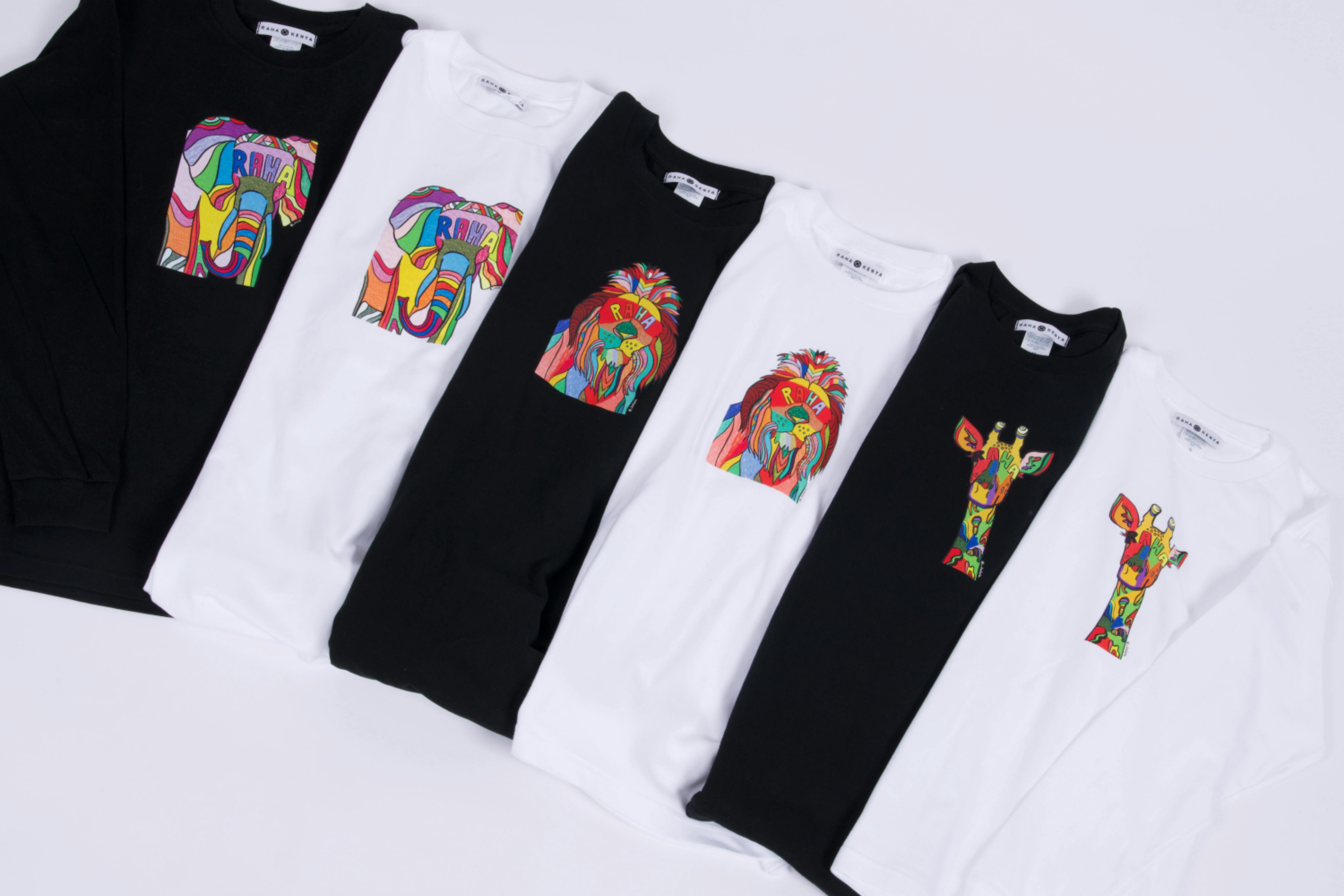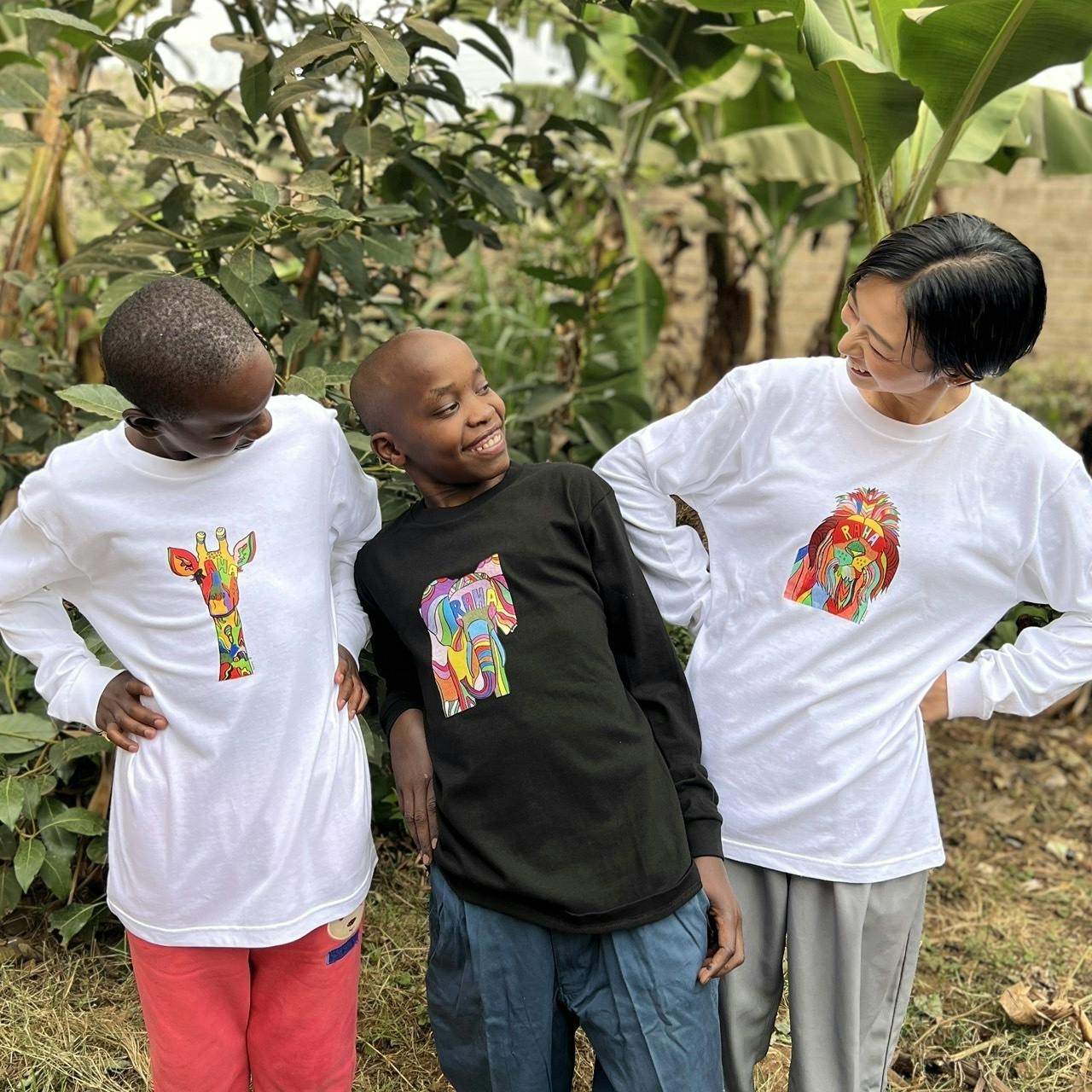 ケニア人デザイナー「ジラニ」が手がけたRAHA KENYAオリジナルのイラスト3種類に、モヨ・チルドレン・センターで暮らす子どもたちが色を塗り、ロンTにしました。