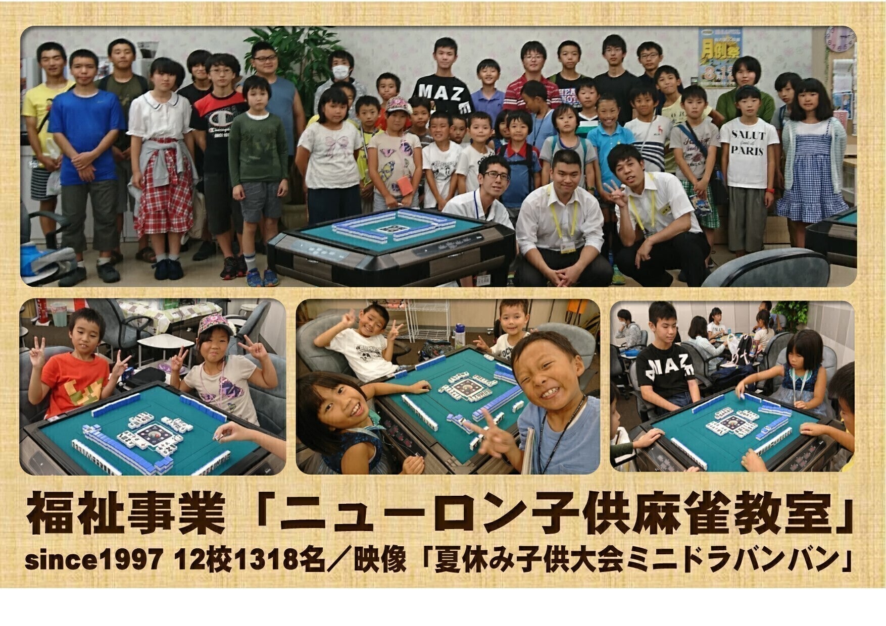 1. 子供教室を守り育てる:麻雀文化を未来につなぐ。子供教室12校への支援。