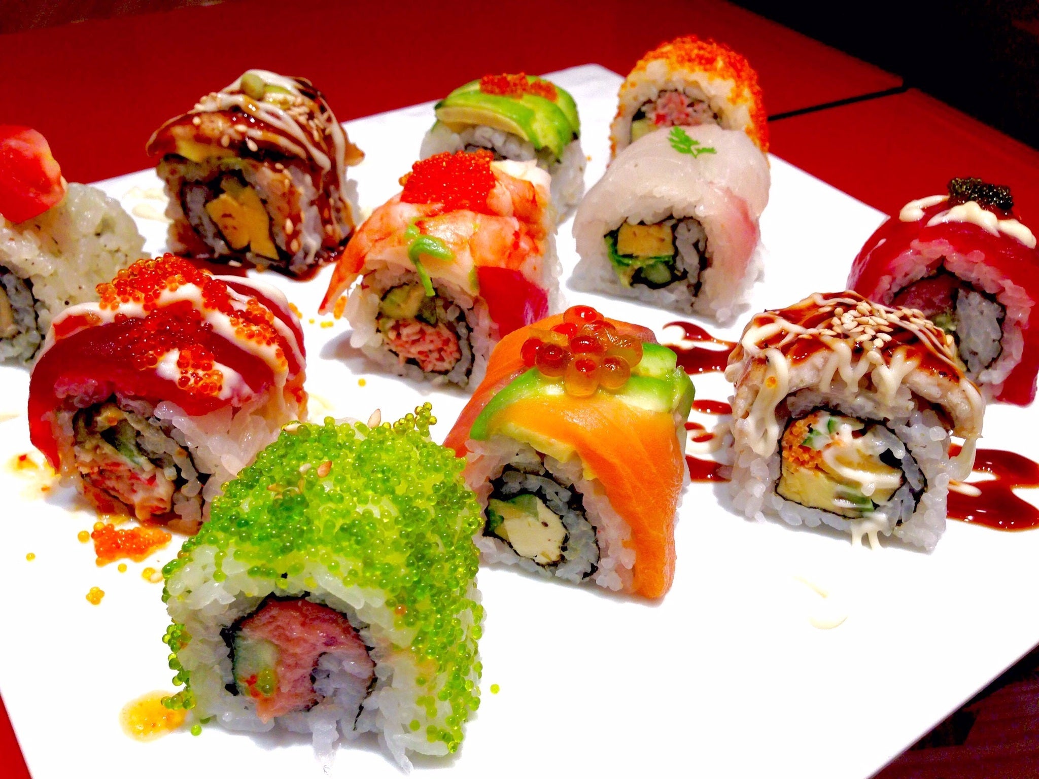ポピュラーロール寿司8種、オリジナル3種、季節のロール寿司、カルパッチョ箱寿司3種など