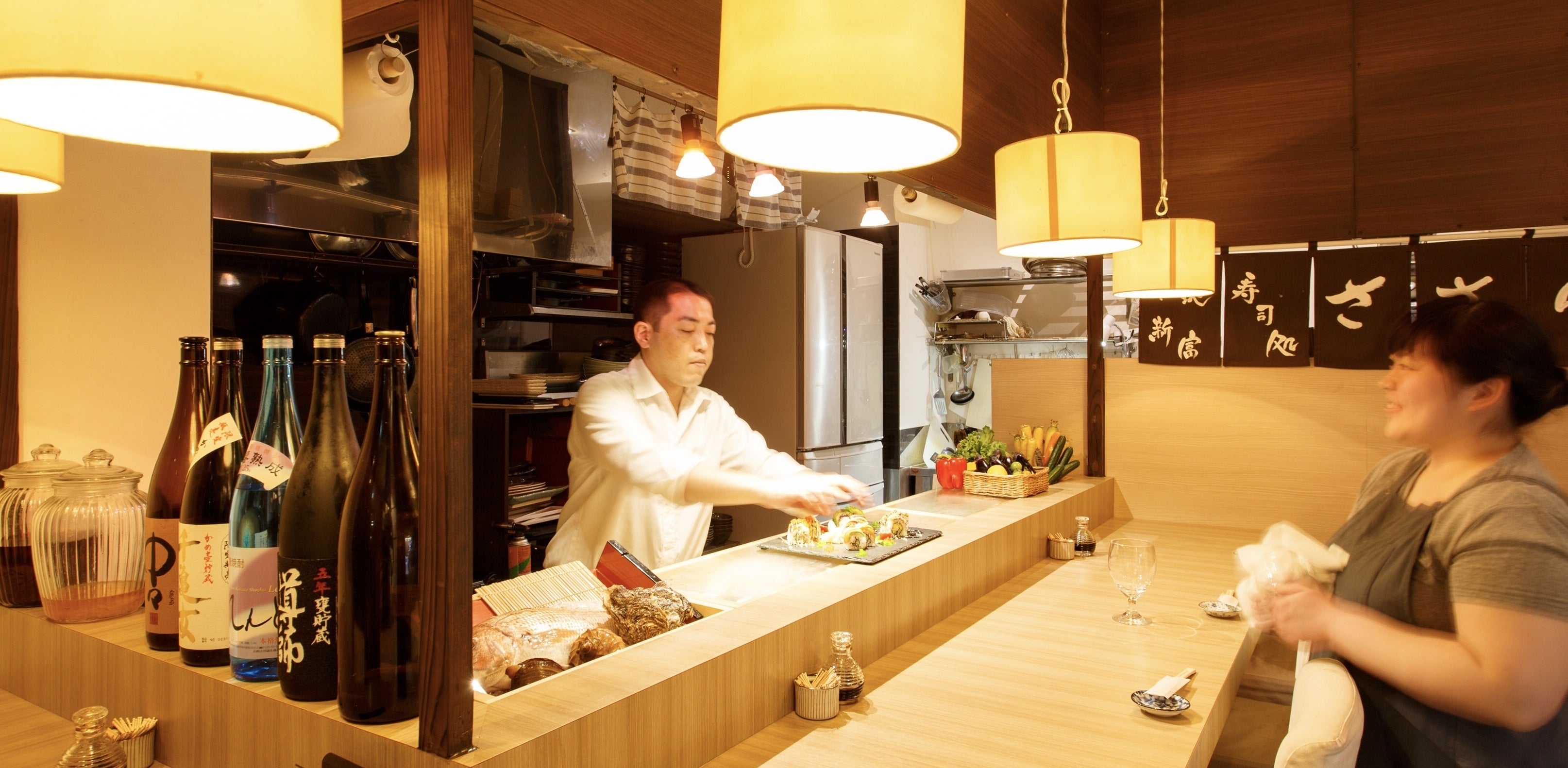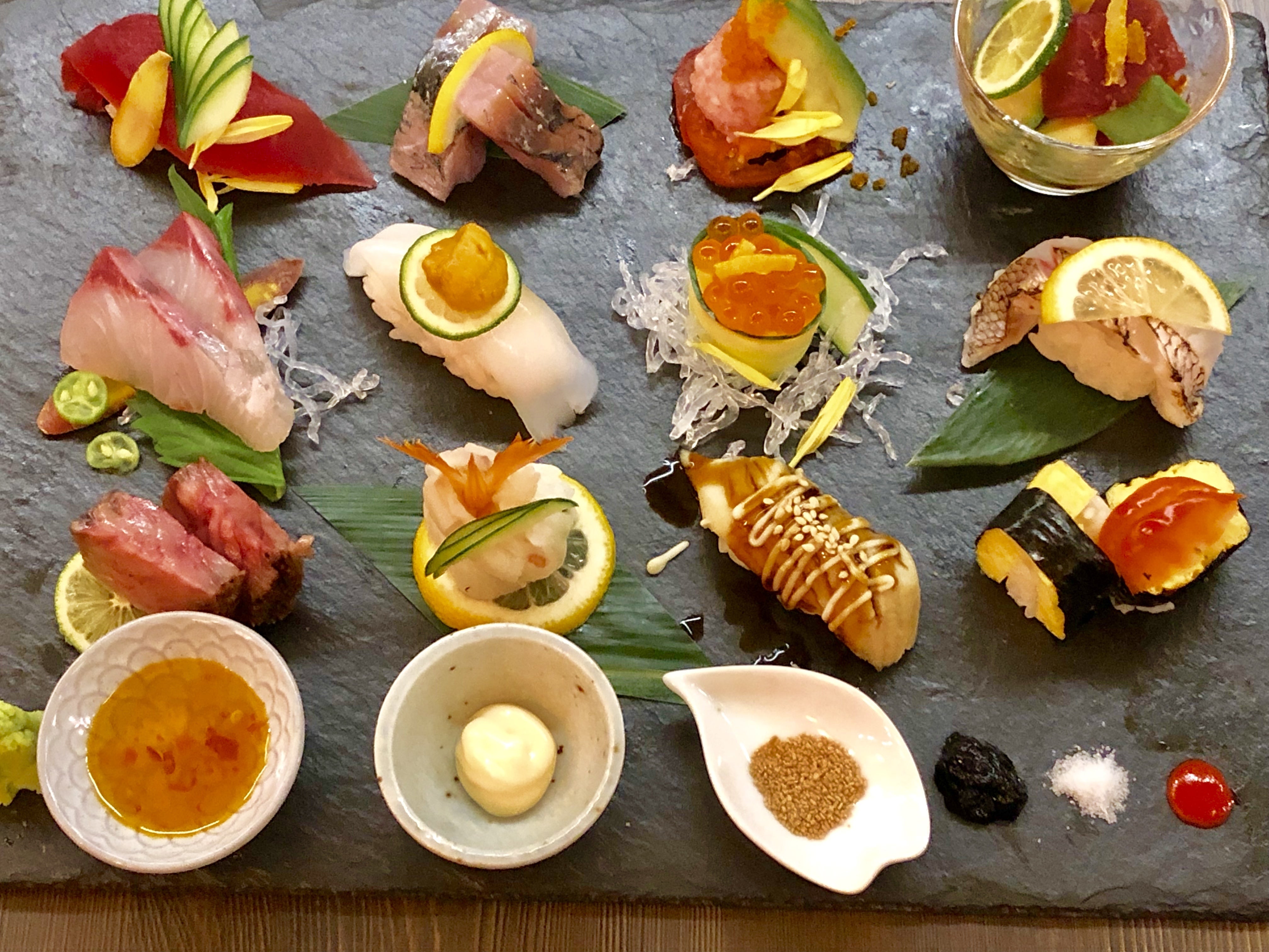 寿司職人歴27年になりました。子供の頃から自分の店を出すことが夢で、寿司テイクアウト大手会社、寿司職人として渡米、銀座の有名店、回転寿司、築地など様々な寿司を経験して来ました。10年前、気の合う相方と出会い、コイツとだったら成功出来ると話をするたびに夢が膨らみそしてお互いさらに成長する為に