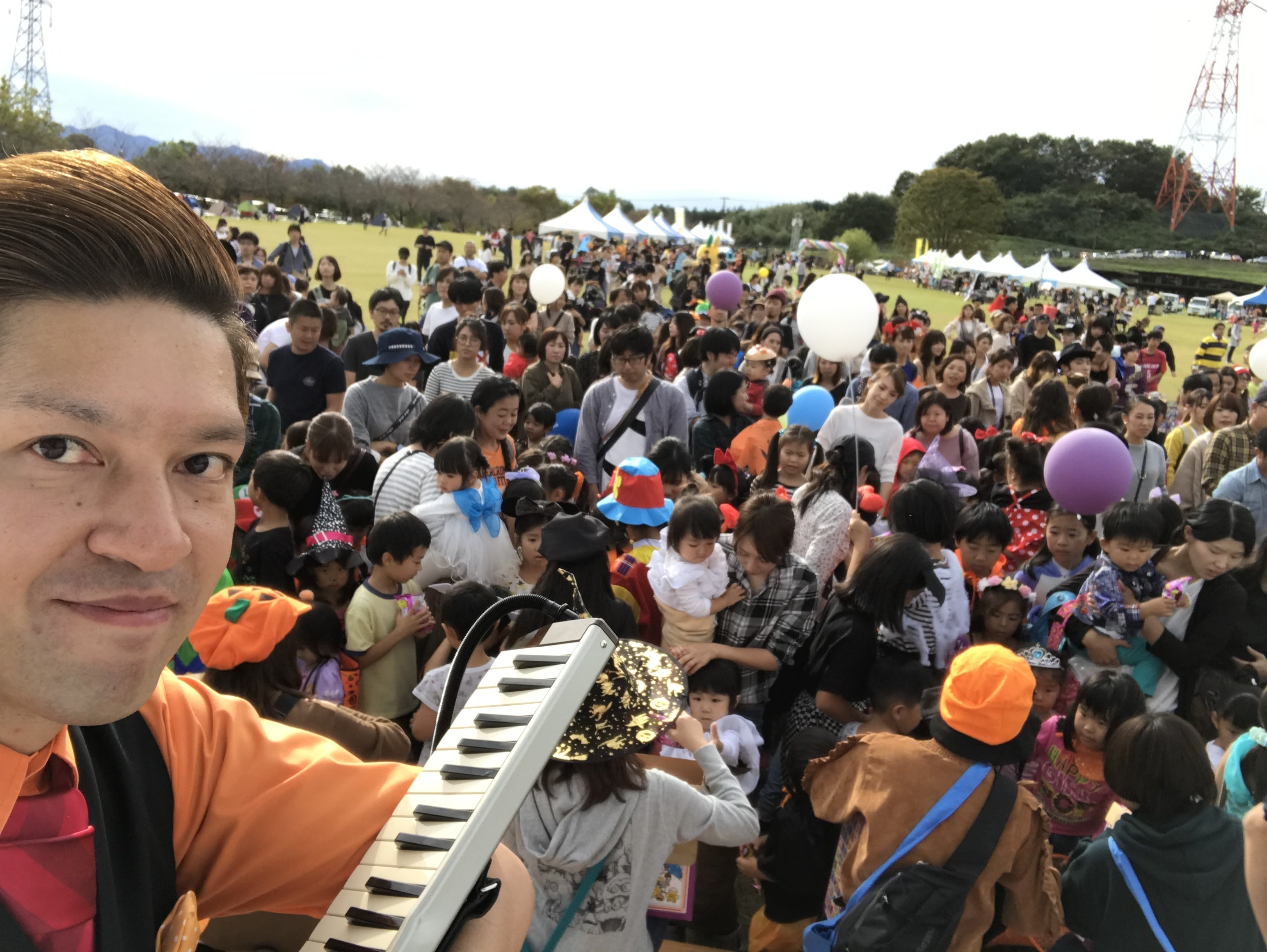 ハロウィンのパレードは生演奏で子供たちを先導