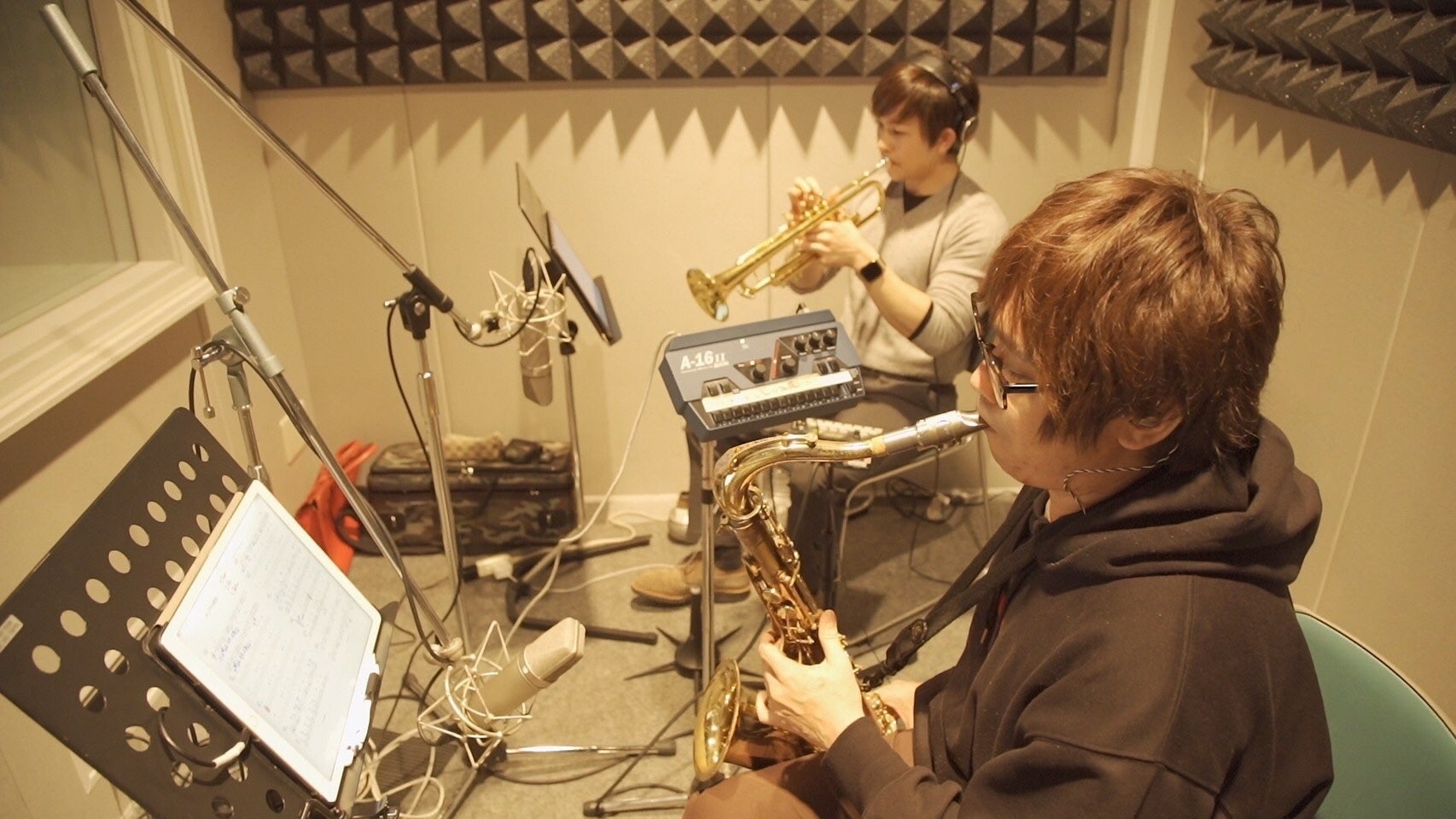 2020/09/26 19:40音楽のある街高崎が誇る、市営のレコーディングスタジオ、TAGOSTUDIO高崎にて上州タカサキオンド吹奏楽バージョンのレコーディングが遂に始まりました。バンドメンバーに素晴らしいエンジニア高瀬さんと沢山のサポートメンバーを加えて、感染症対策をあれこれ施し良い作品を作れる様に盛り上がってます。吹奏楽作品のレコーディングとしては前代未聞の少人数オーバーダビングを駆使してビックバンドの空間をオマージュしております。音源の完成をぜひお楽しみに。タケオ・リアル&タカサキシティバンドWebリンク〜HP〜http://real-up.com/〜公式You tube チャンネル〜https://www.youtube.com/channel/UCujrIY5sWjcCL9wLVl8D2FQ〜blog〜http://blog.livedoor.jp/takasakicityband/〜公式Facebookページ〜Takasakicity.netまたは「タケオ・リアル&タカサキシティバンド」で検索〜公式ツイッターアカウント〜tcb_tcb_tcb もっと見る
