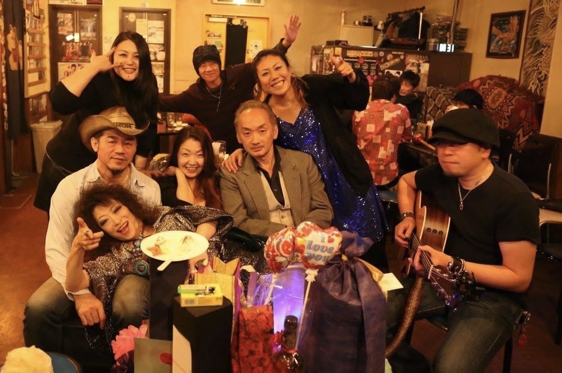 祇園の街のロッキンナイト、出演者・お客様と終演後の1枚