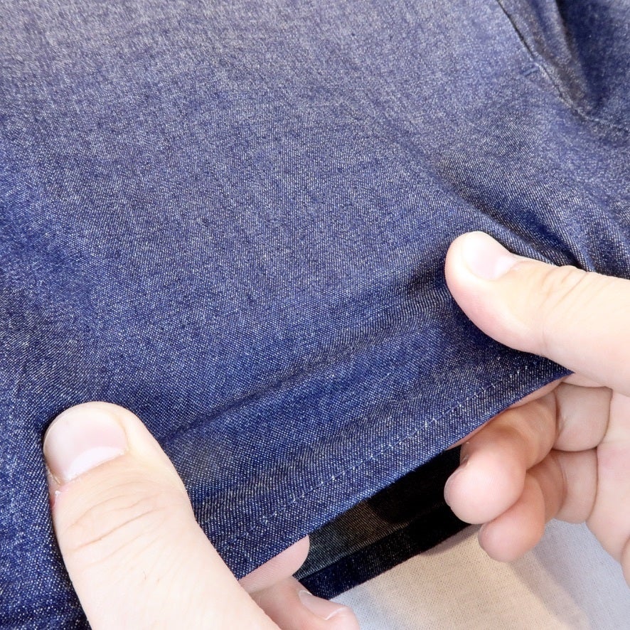 デニム生地といっても、ゴワゴワした着心地の悪いものではなく、肌あたりの良い、とても柔らかいソフトデニムという特別な生地を選びました。