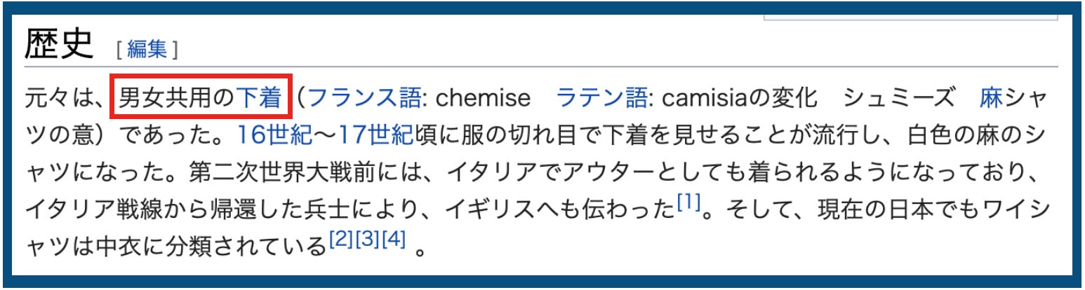 それは、シャツははじめ、下着として着用する衣服として生まれたので、ポケットを備える必要がなかったからなんです。(ウィキペディアより)