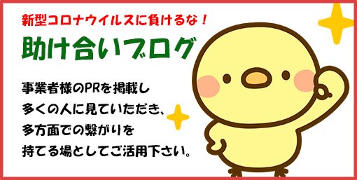 新型コロナウイルスの影響はマイナスの事ばかりですが、「助け合いブログ」をご利用頂いた事業者様や、クラウドファンディングでご支援下さる方々、PRにご協力下さる方と繋がれたご縁を、プラスの影響として笑顔で新型コロナウイルス終息を迎えられたらと思います。