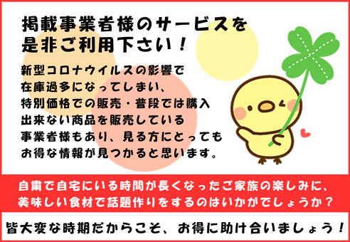 「在庫過多・売上減少の事業者様」と「自宅で美味しい食を楽しみたい利用者様」がWin-Winの助け合いを行う事で、今の大変な時期を助け合って乗り越えていく繋がりの場としてご利用して頂けたらと思い運営しております。