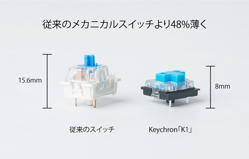 厚さは従来のメカニカルスイッチより48%薄く、メカニカルキーボード特有の打鍵感を追求しました。