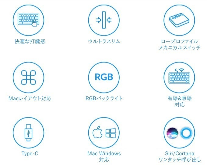 特にMacに対応しているメカニカルキーボードが少ない中、K1ではMacユーザーでもいつも使っているキー配置でメカニカルキーボードを使うことができます。