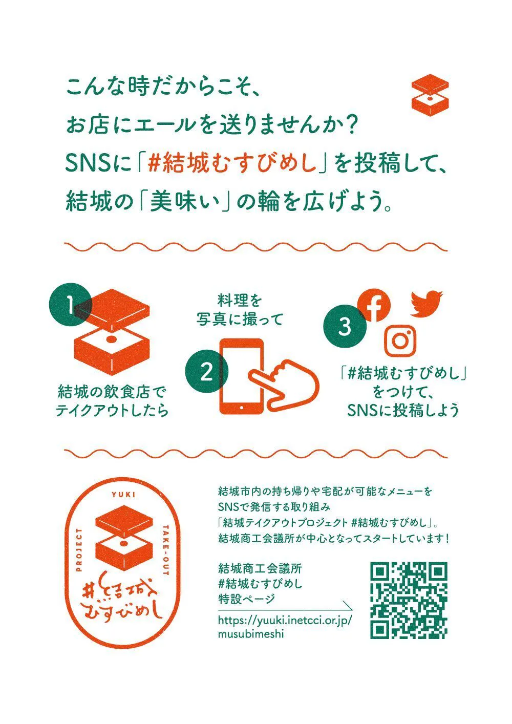 そんな苦しい未曾有の事態だからこそ、市内の飲食店が一つになって乗り越えていこう!と立ち上げたプロジェクトがこの「#結城むすびめしプロジェクト」です。