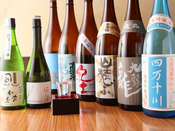 もうひとつのウチの自慢は『最強飲み放題』。ビール・チューハイ・ハイボールはもちろんですが、地酒30種の日本酒ラインナップも充実です。磯自慢や四万十川、紀土、越乃景虎などなど。日本酒好きな方からは『こんないい酒飲み放題にして大丈夫?』とご心配していただいています。