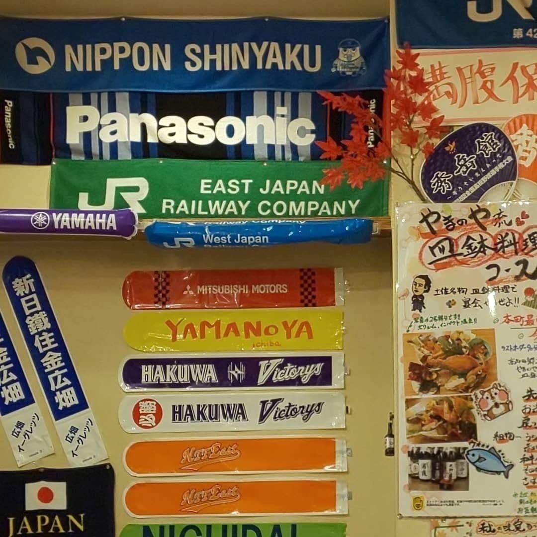 3年前に店主になったのを機に、溜まりに溜まった社会人野球の応援グッズや高校野球グッズを店の装飾品として使用したことから、いろんなご縁に恵まれ、いつの間にかアマチュア野球ファンの方々に集まっていただけるようになりました。
