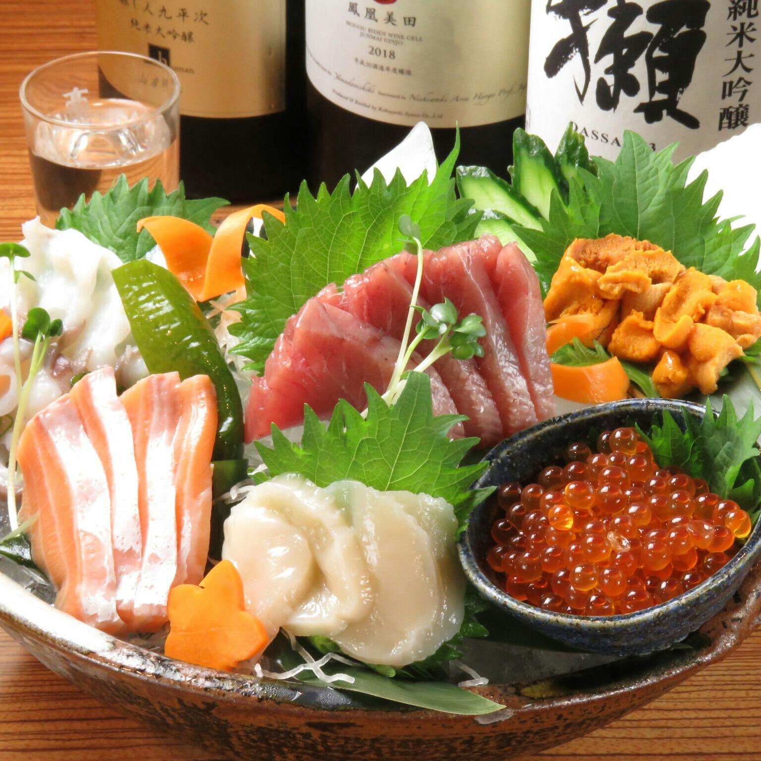 友人の魚屋が市場で目利きした鮮魚には自信があります。名物の『お造り氷山盛り』は見た目も豪華で、一切れを大き目にしているので、お口いっぱいにしっかり味わっていただけます。なかなかスーパーではお目にかかれないレアな魚も盛ってるので『はじめて食べた』と感動してくださる方もいます。
