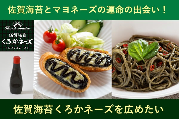 佐賀県の海苔の需要拡大を目的として、新たな商品”佐賀海苔くろかネーズ” を試行錯誤のうえ、完成予定です。全国の海苔好きのマヨネーズ好きの方に是非ご試食していただきたいです。
