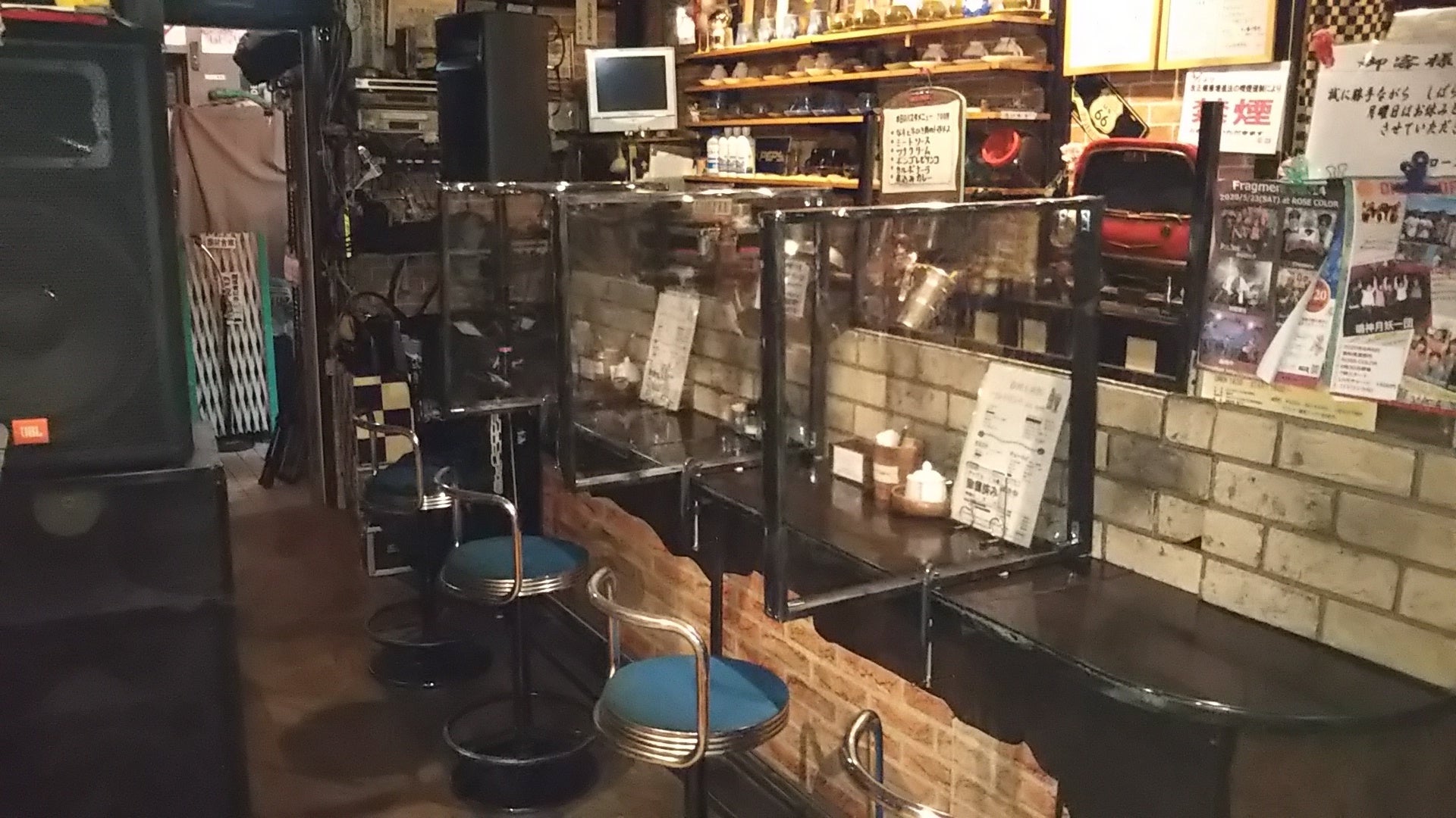 まだ先は長いですが前を向き再開に向けて頑張っております! 現在 ソーシャルディスタンスを考え店内を更に改善しております!写真はカウンターを4席に減らし、席ごとに仕切りを入れお客様の安全を更に確保するため改善致しました! 少し寂しくも感じますが…… この世の中仕方ありませんね(-_-;) これで少人数のカフェ的なことは徐々にできたらと考えておりますのでよろしくお願い致します。