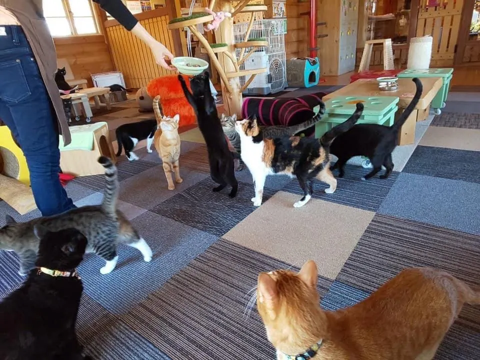 私たちは三重県玉城町にある 保護ねこcafe『ねこ達のいえ』です。当店は ねこ殺処分ゼロを目指す、里親募集型の保護ねこカフェで 地域ボランティアさん達から保護された ねこ達を受け入れ、木の香りたっぷりの広々とした店内で自由にねこ達と遊んでいただきます。