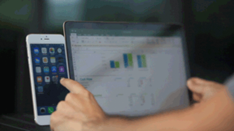 コンピュータを操作しながら、同時にスマートフォンも操作できます。