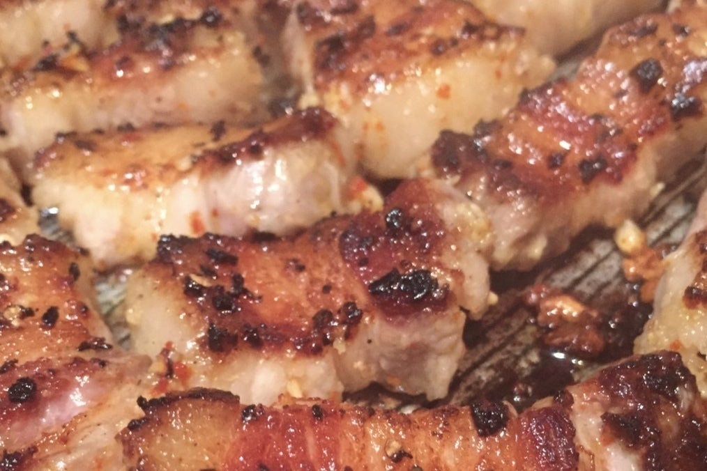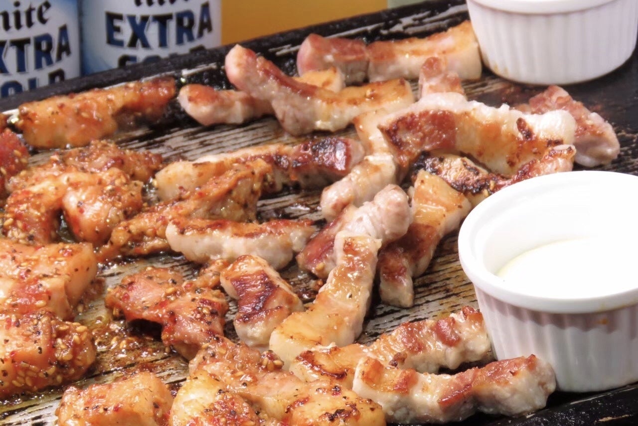 カリカリに焼き上げたサムギョプサル僕たちの夢【僕たちに関わる全ての人を幸せにする】を実現する為、とにかく、何よりも当店の名物である韓国焼肉サムギョプサルにこだわりました。来る日も来る日もサムギョプサルの事を考えました。きっと僕たちよりサムギョプサルを食べた人間はいないと思います笑