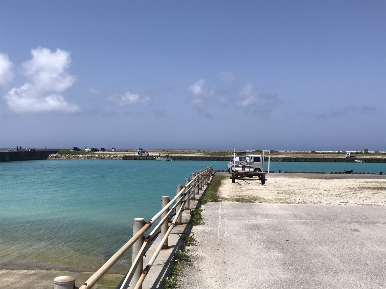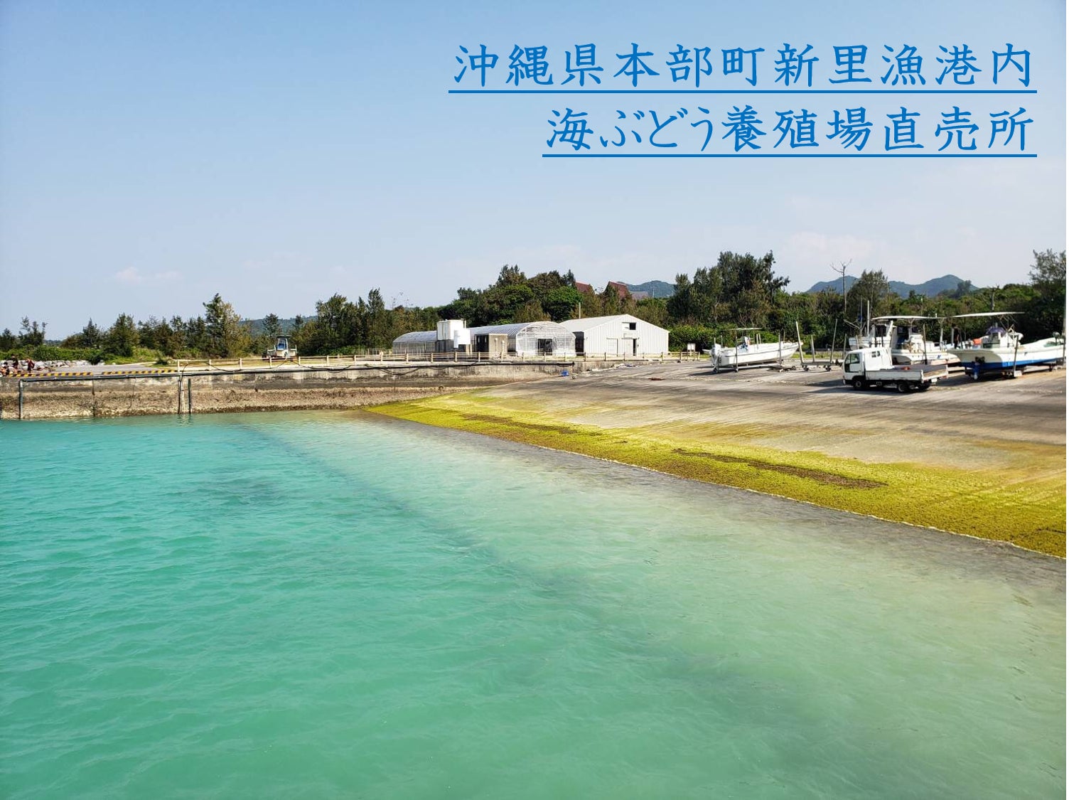 養殖場兼直売り所の海ぶどうは新里漁港場内にあり海に面しているので、